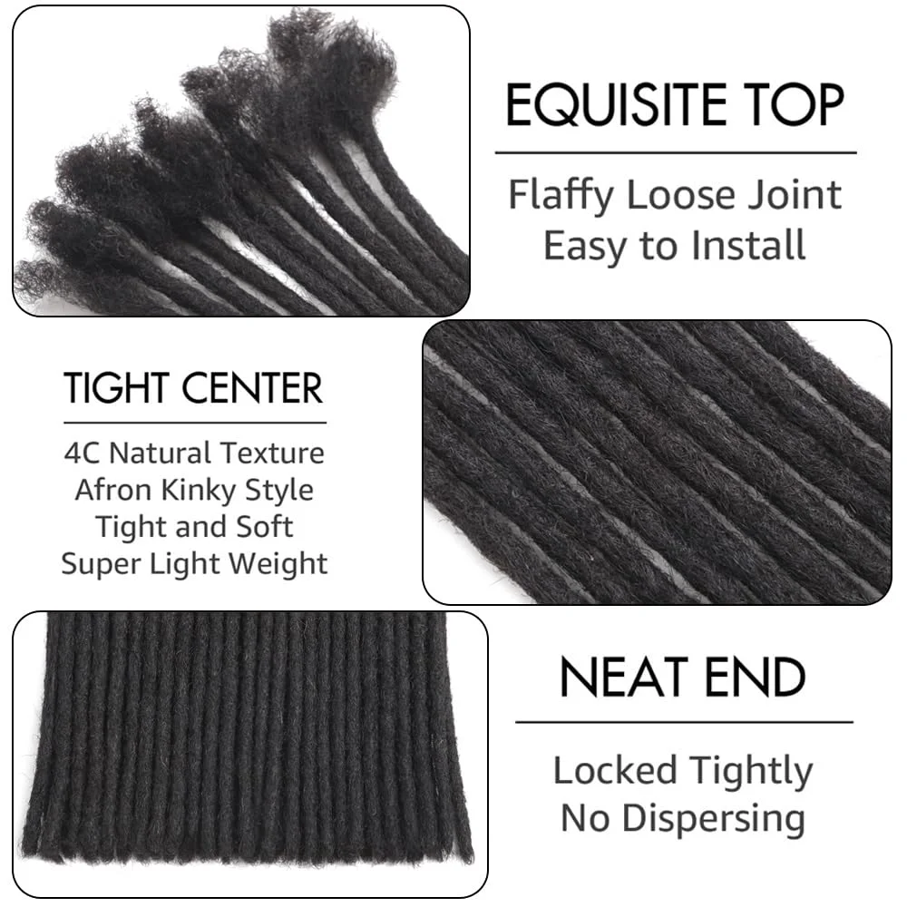 0.6cm Width 6-22 Inch 40 Strands 100% Human Hair Loc Extensions Full Handmade Dreadlock Extensions for Men Women Kids Can Be Dye