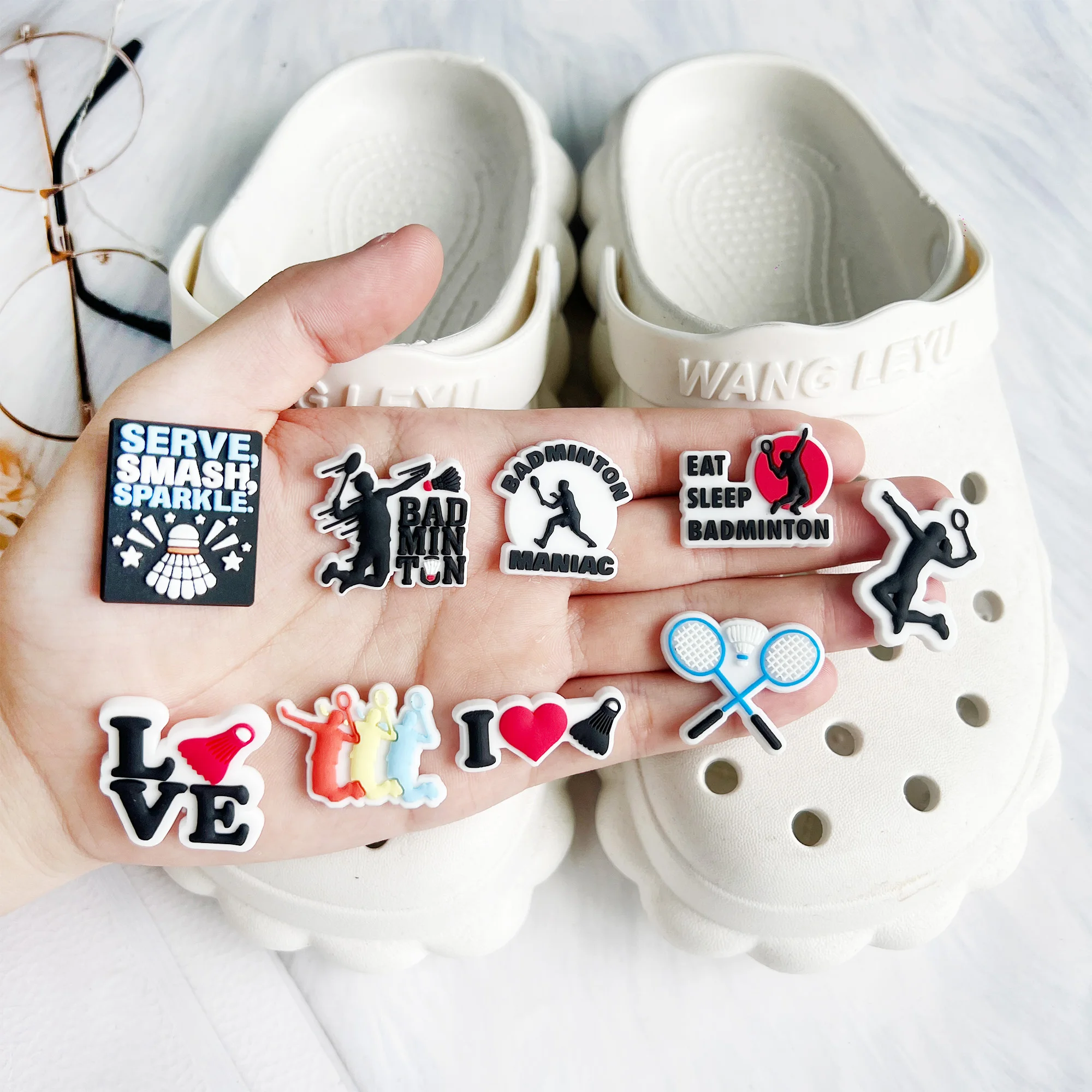 1-9PCS Sport Love Badminton Maniac PVC Shoe Charms For Clogs Pins Fit Wristbands Garden Shoes Button Decorations Kid Gift