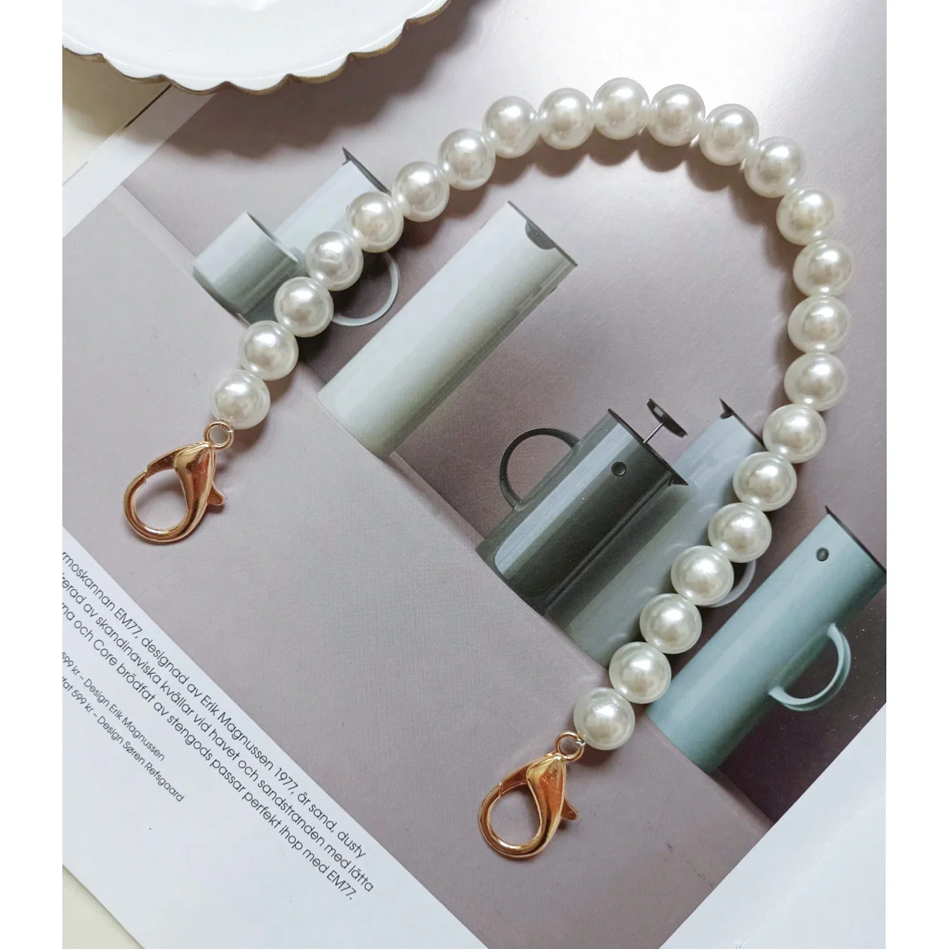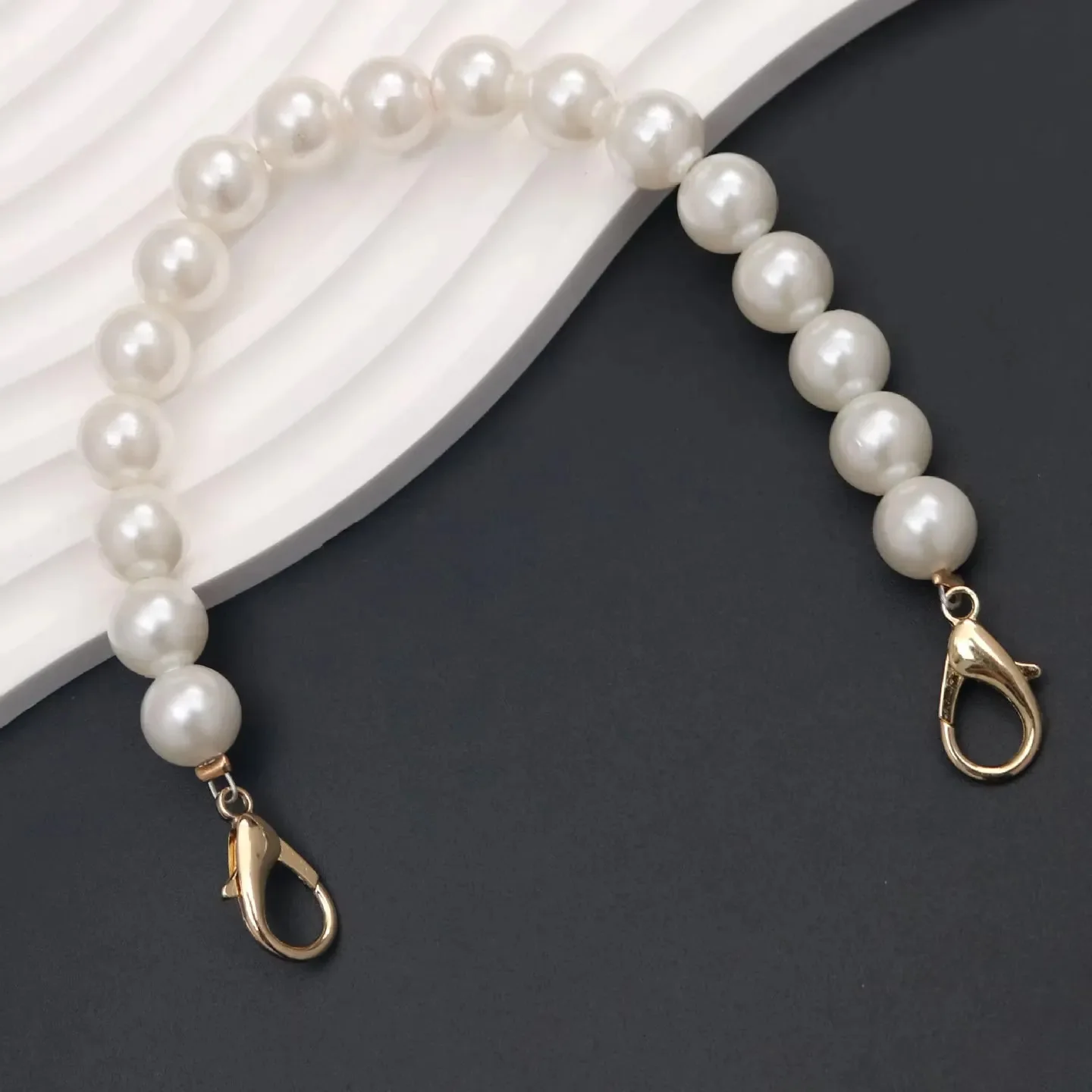 1 Pcs Pearl Purse Chain Strap Pearl Bag Chains Decorations White,12mm Imitation Pearl Bead Bag Chain Short Strap