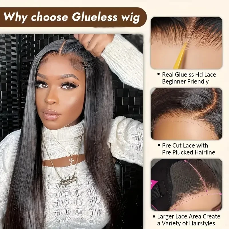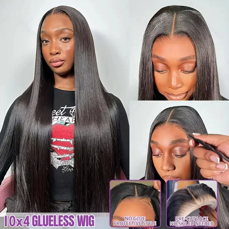 10x4 Glueless HD Lace Front Wigs 250% Silky Straight Human Hair Wigs Put On Go Halloween Glueless Wigs Straight 13x4 Lace Wigs