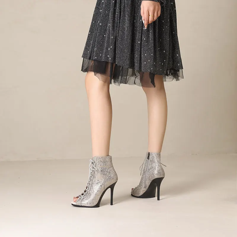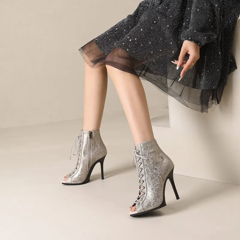 2025 Peep Toe Boots Lace up Female Shoes platform For Latin Dancing Street Sexy Stilettos Booties Plus Size 35-42