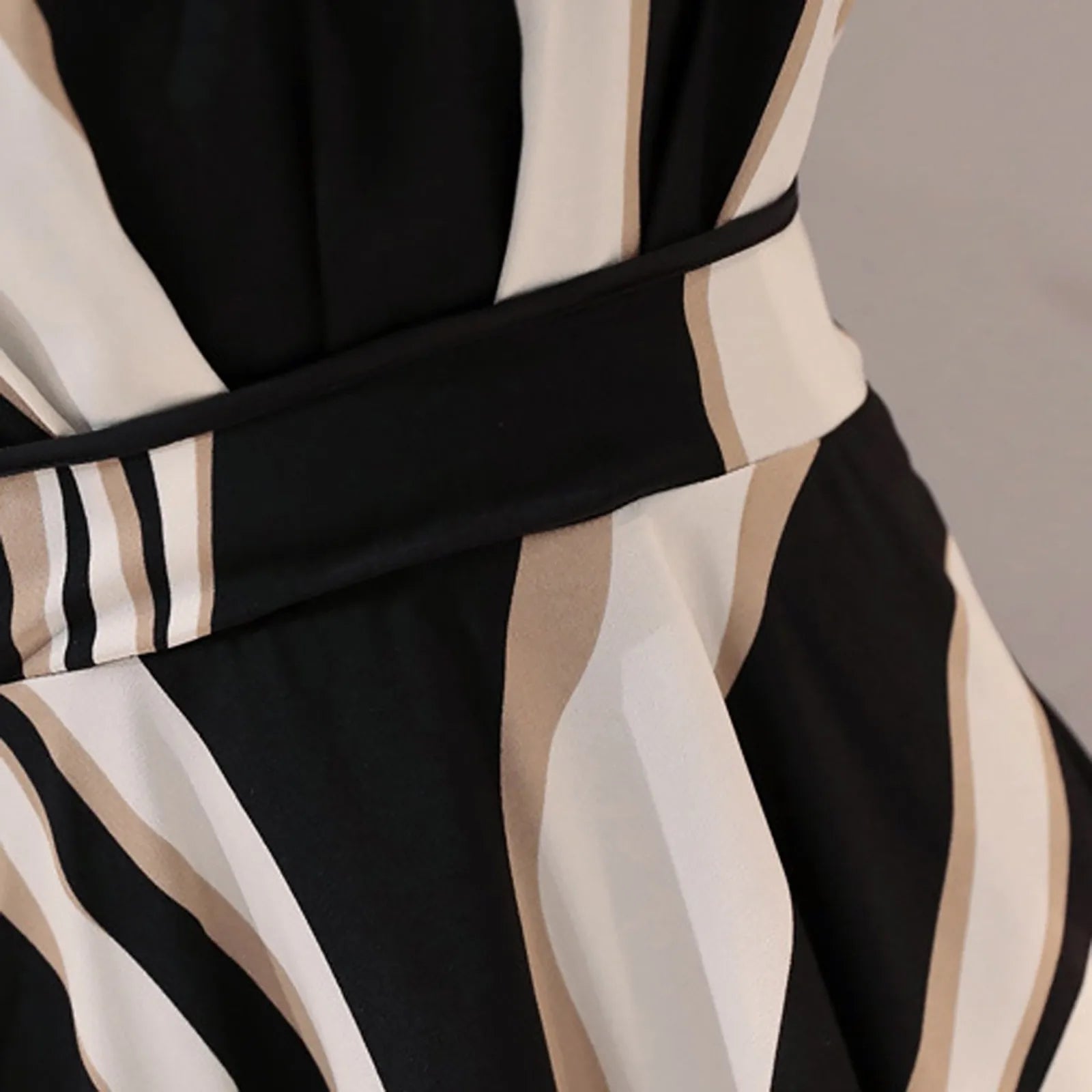 Fashion Women Business Dress Belt O-Neck Short Sleeve Knee Length Dress