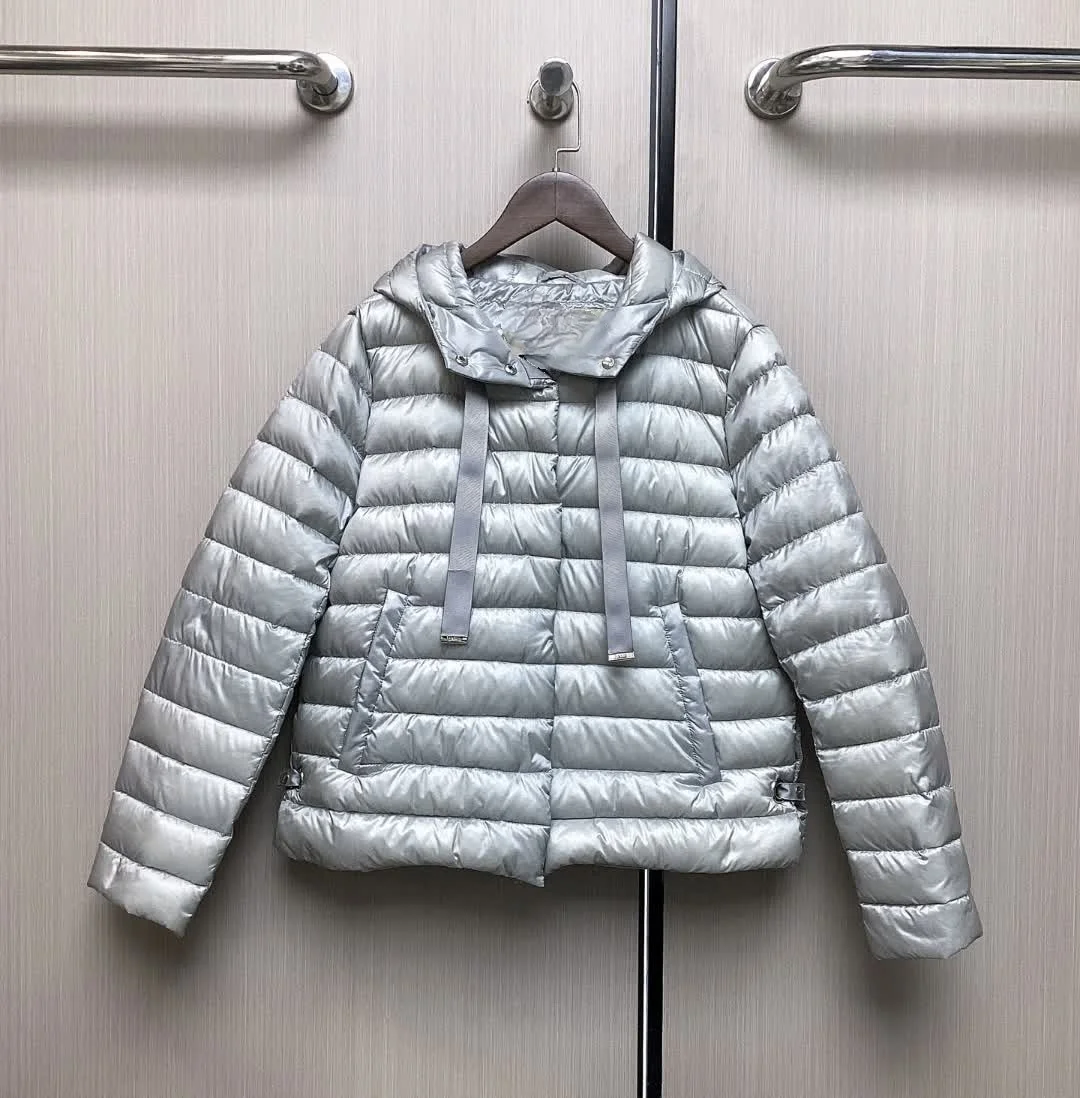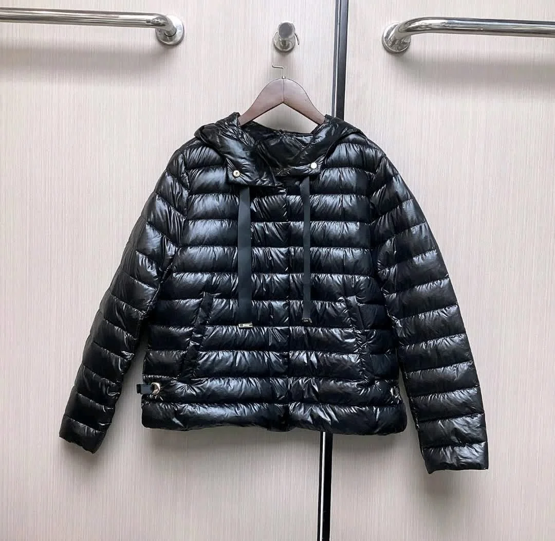 2025H new style pure color drawstring hooded temperament commuting light and thin down jacket