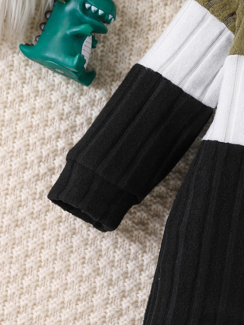 3 Colours Autumn Bodysuits Newborn Baby Boy Long Sleeve Colour Block Romper+Hat Simple Onesie Jumpsuit for Toddlers 1-18Months