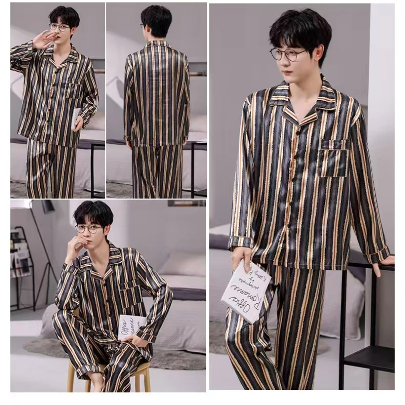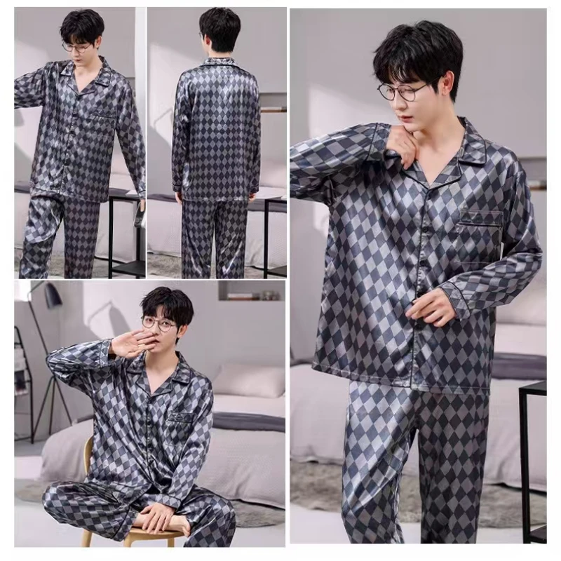 3XL-5XL 165KG Extra Large Size Pajamas Men Print Satin Long Sleeve Trouses Suit Spring Summer Fatty Fattening Loose Home Clothes