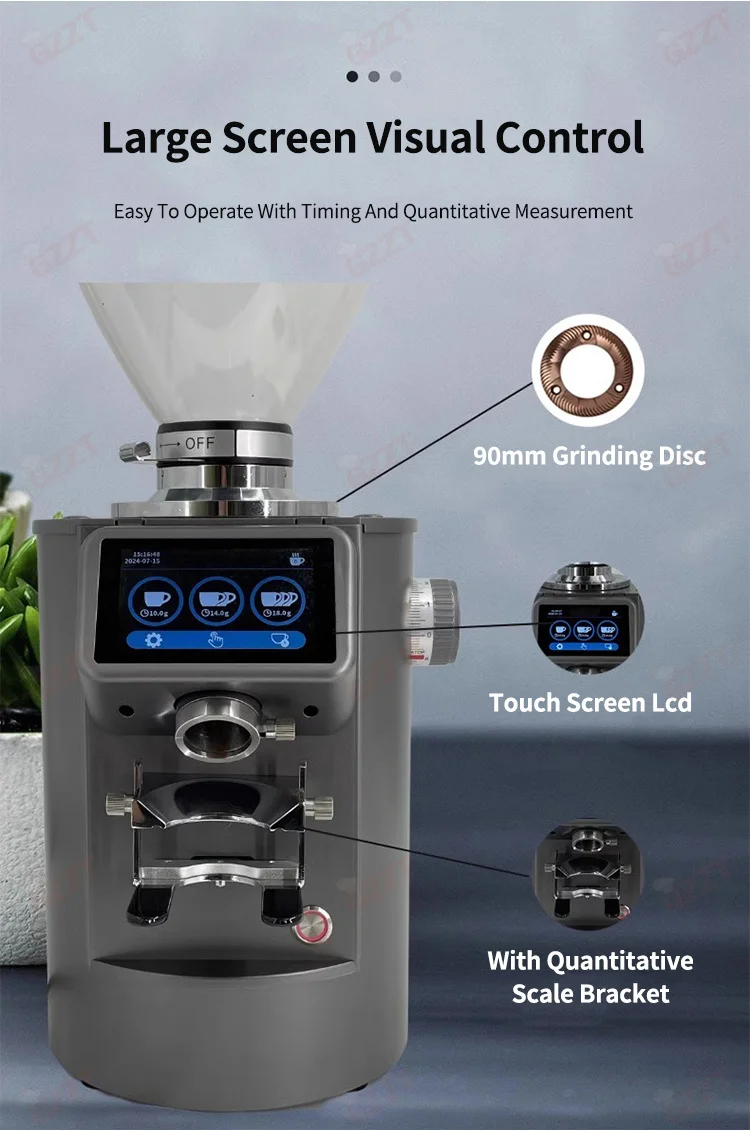 90MM Burr Automatic Coffee Grinder 3.5LBS Hopper Anti-jumping Bean Adjustable Thickness Cafe Grinding Machine Commercial Cafe
