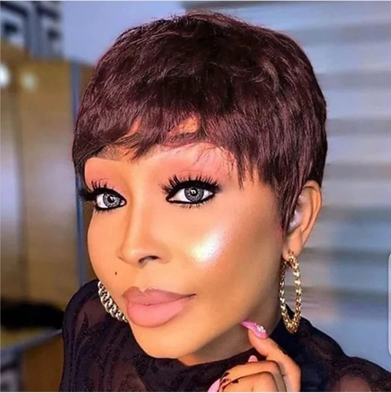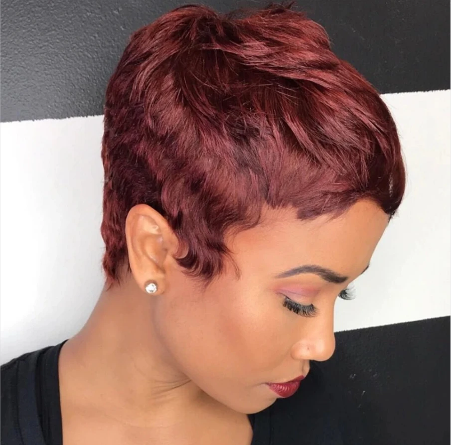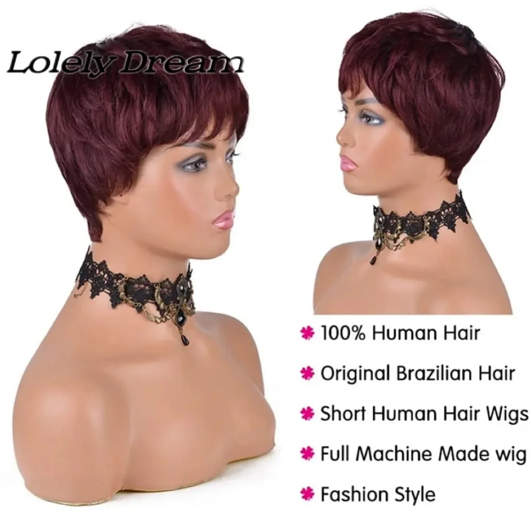 99J Colored Short Straight Bob Pixie Human Hair Wig Full Machine Made For Women Brazilian Remy Hair Burgundy Red Bob Wigs