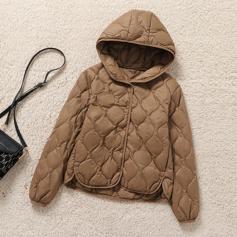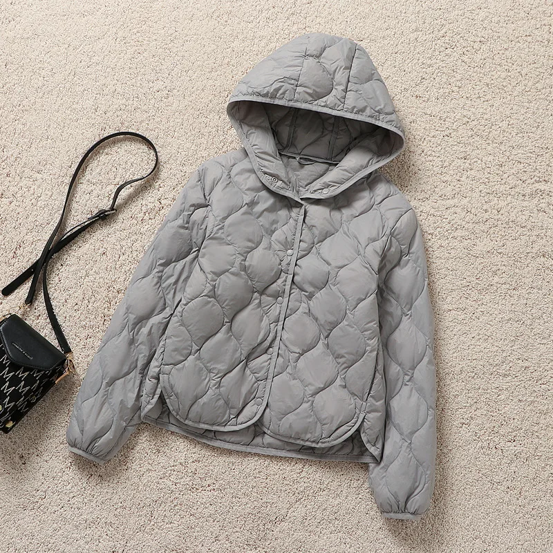 Autumn and Winter New Women's Lightweight Down Jacket Fashion Warm Windproof Slim White Duck Down Hooded Mature Women's Jacket