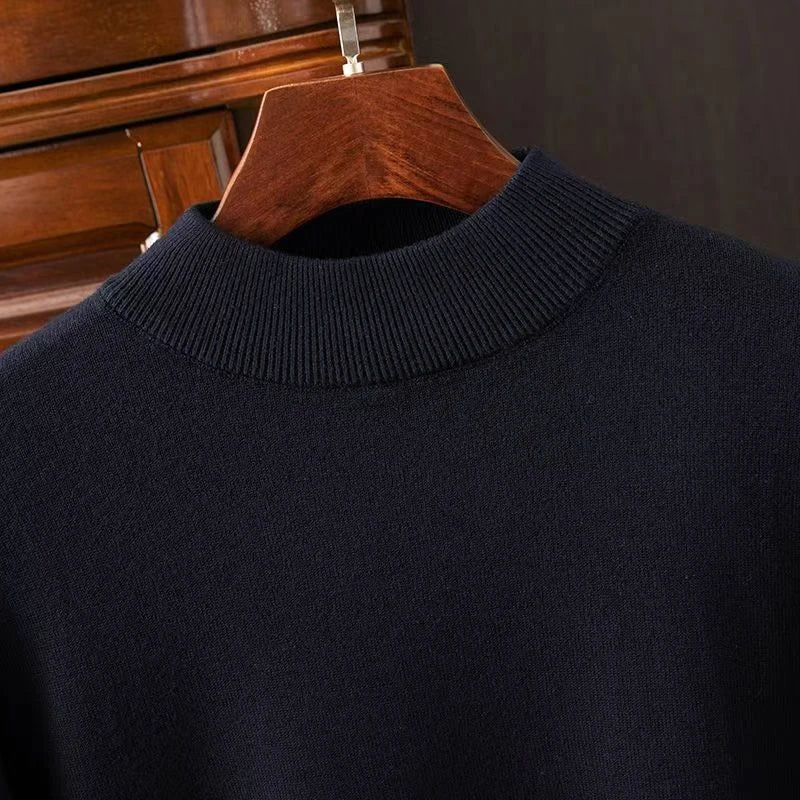 Autumn Mens Mock Turtleneck Knitwear Sweater Outdoor Half Neck Solid Color Pullover Streetwear Winter Warm Knitted Sweater