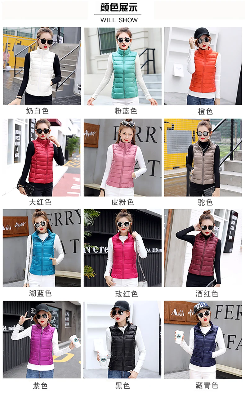 Autumn Ultra Lightweight Portable Tank Top Sleeveless Duck Down Coat Slim Fit Standing Collar Women's Down Vest Women's Coat