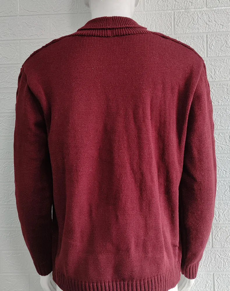Autumn Winter Men's Warm Knitted Sweater Solid Single-breasted Twisted Texture Cardigan Lapel Slim Buttoned Thick Sweater Male