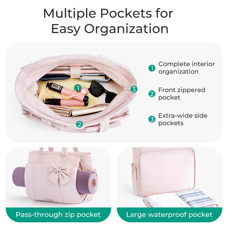 BAGSMART Padded Tote Bag With Bow Casual Quilted Padded Women Shoulder Bags Fit 15.6in Laptop Large Capacity Yoga Gym Bags