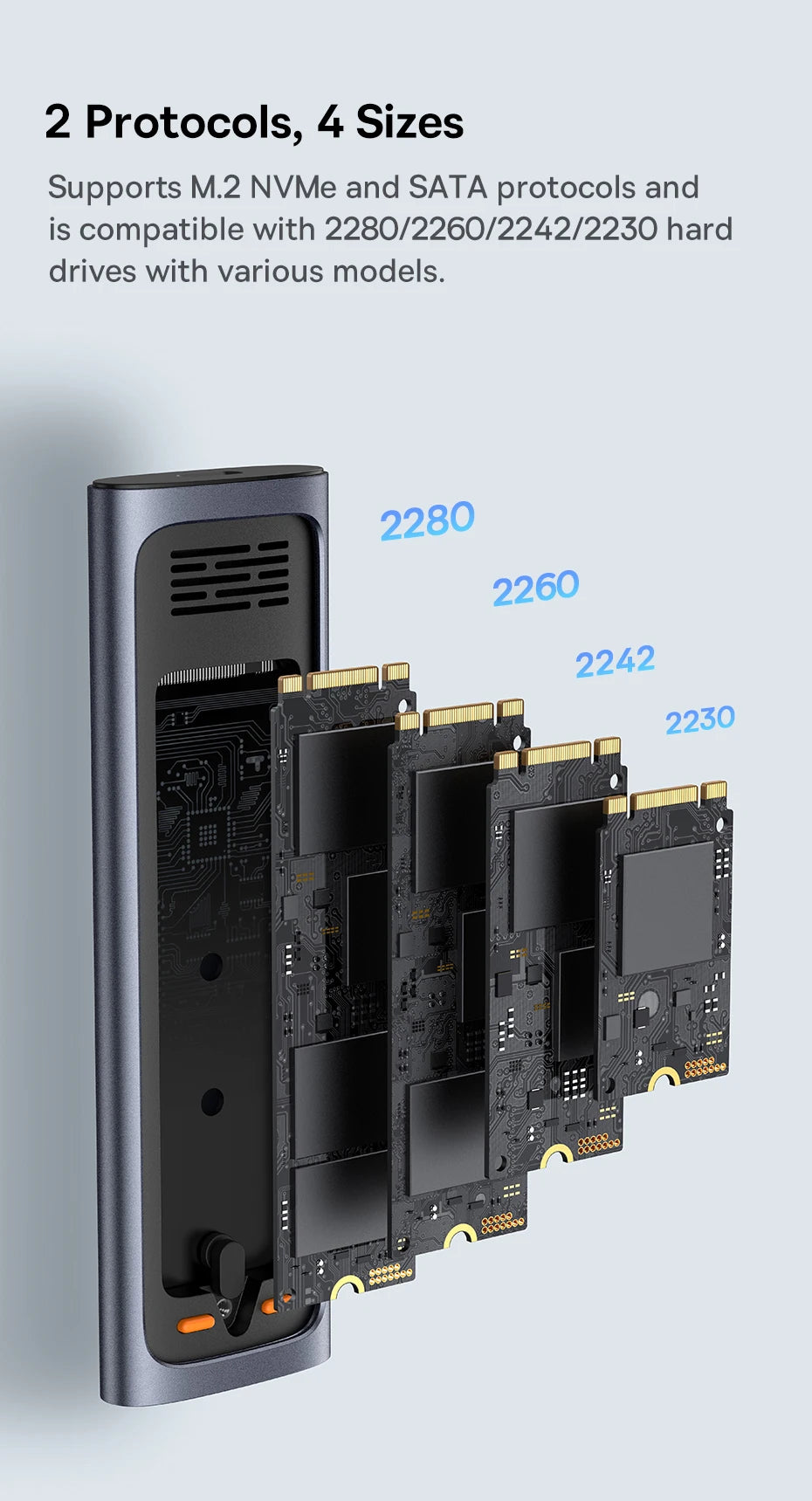 Supports M.2 NVMe and SATA protocols