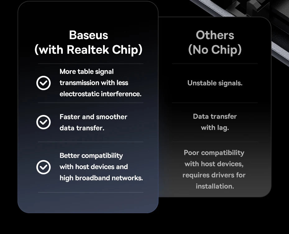 Realtek chip offers a faster and more stable data transfer with less consumption and no lag.