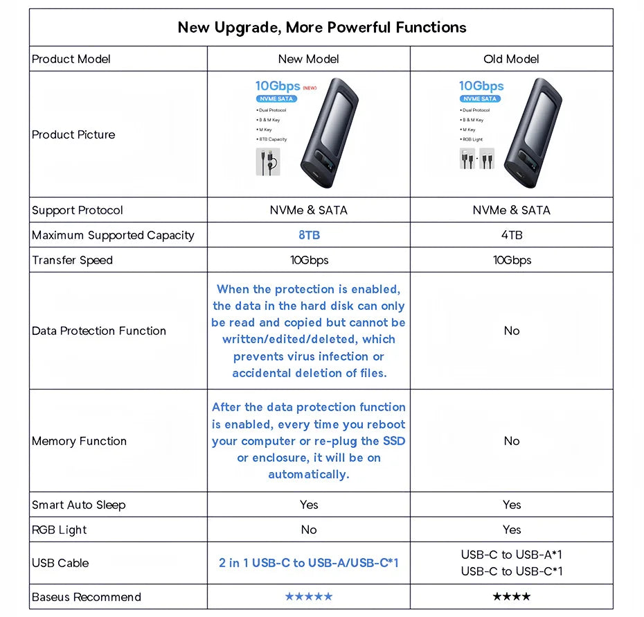 Comparison of Baseus M.2 NVMe SATA SSD Case