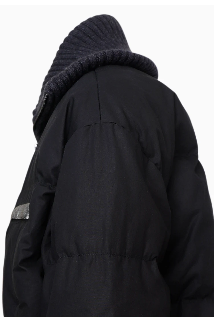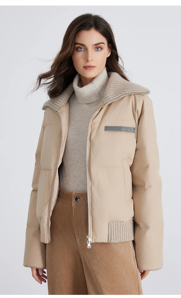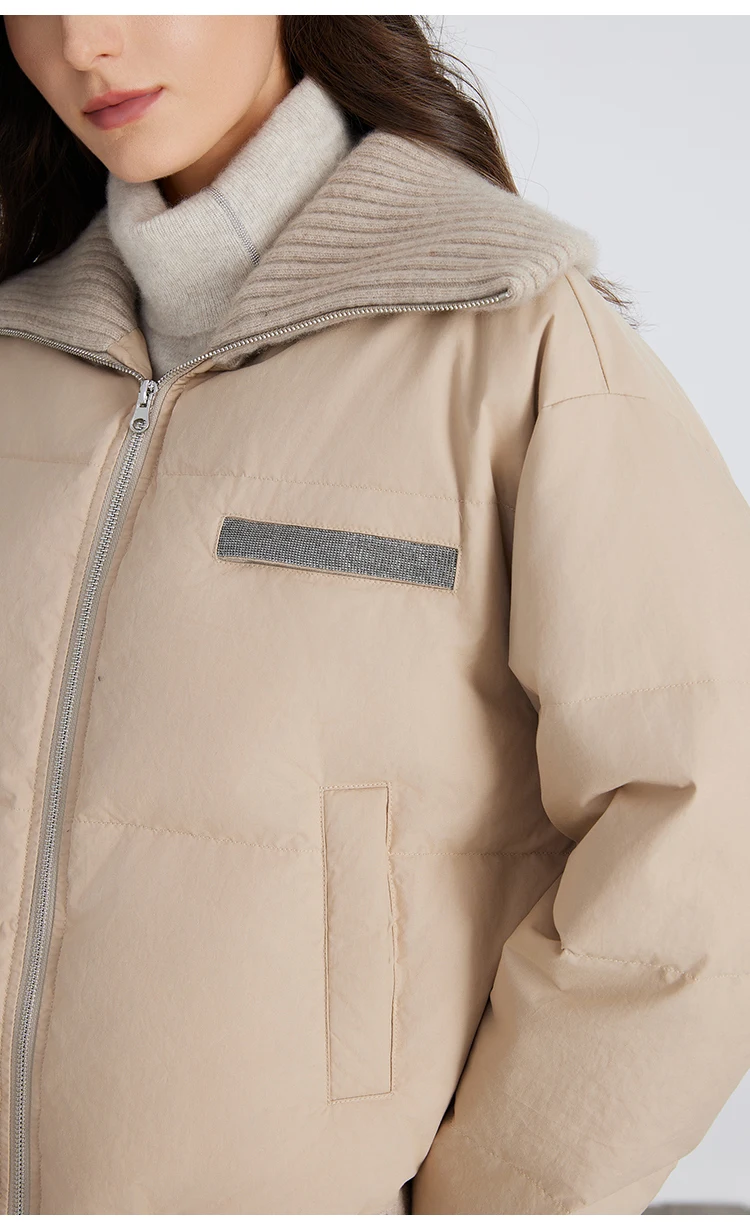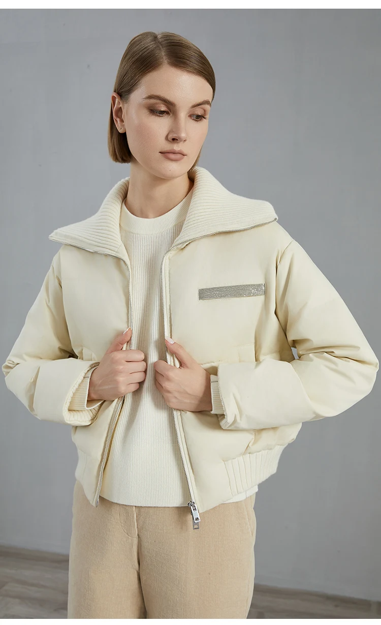 BC835 White goose down with large lapel warm zipper long-sleeved down jacket 100 cashmere warm coat