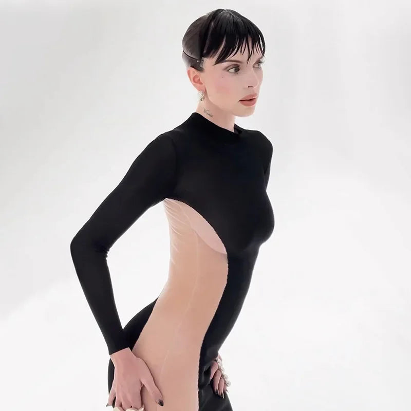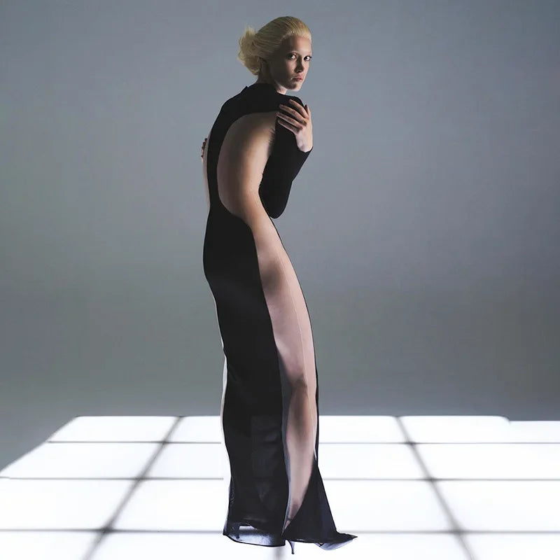 Black Maxi Dresses For Women Side See Through Vestidos Elegantes Para Mujer Slim One-Pieces Sexi Night Dress Hot Club Outfit