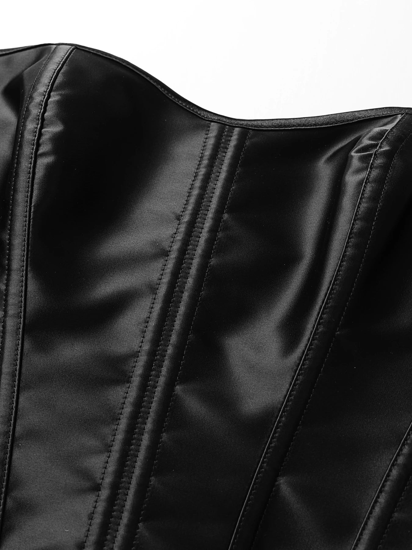 Black punk hot girl style strappy waist cinching bow corset for women shaping top