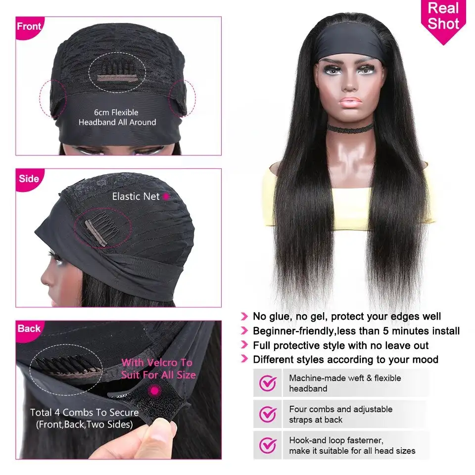 Body wave Headband Wig 250% Human Hair Wigs For Women Brazilian Straight Wig 8"-34" Remy Human Hair Wig 200% Machine Made Wig