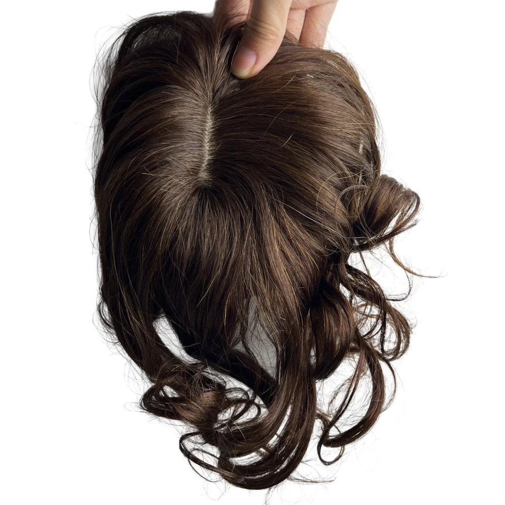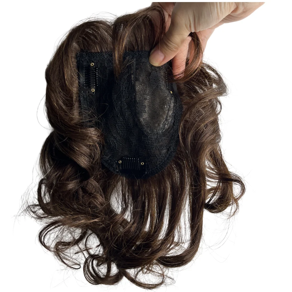 Body Wavy Human Hair Toppers for Women 25cm Clip In Curly Hairpieces Extensions Increase Hair Volume Mild Brown Non-Remy