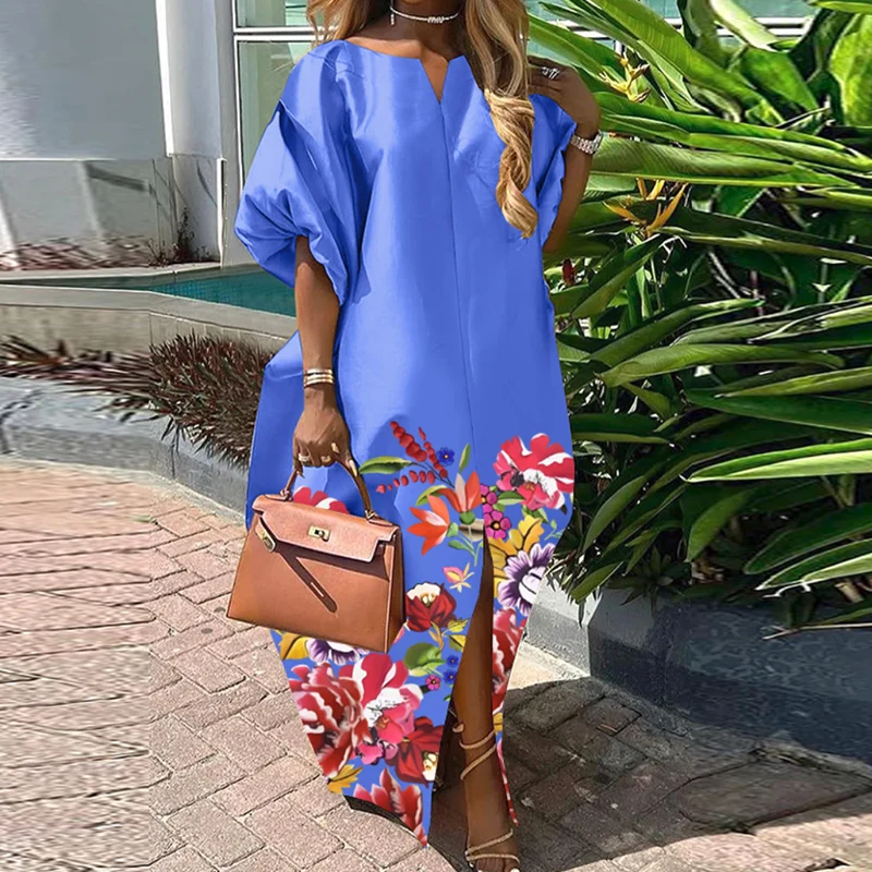 Bohemian Maxi Long Dress 2025 Women Satin Silk Sundress Elegant Summer Half Sleeve V Neck Vestidos Oversized Casual Loose Robe