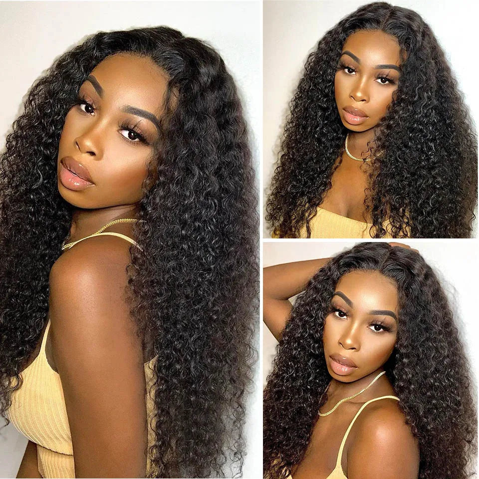 Brazilian Raw Kinky Curly 13x4 Lace Frontal Wig Pre-Plucked Human Hair Wigs with Baby Hair Natural Hairline 4x4 Lace Closure Wig