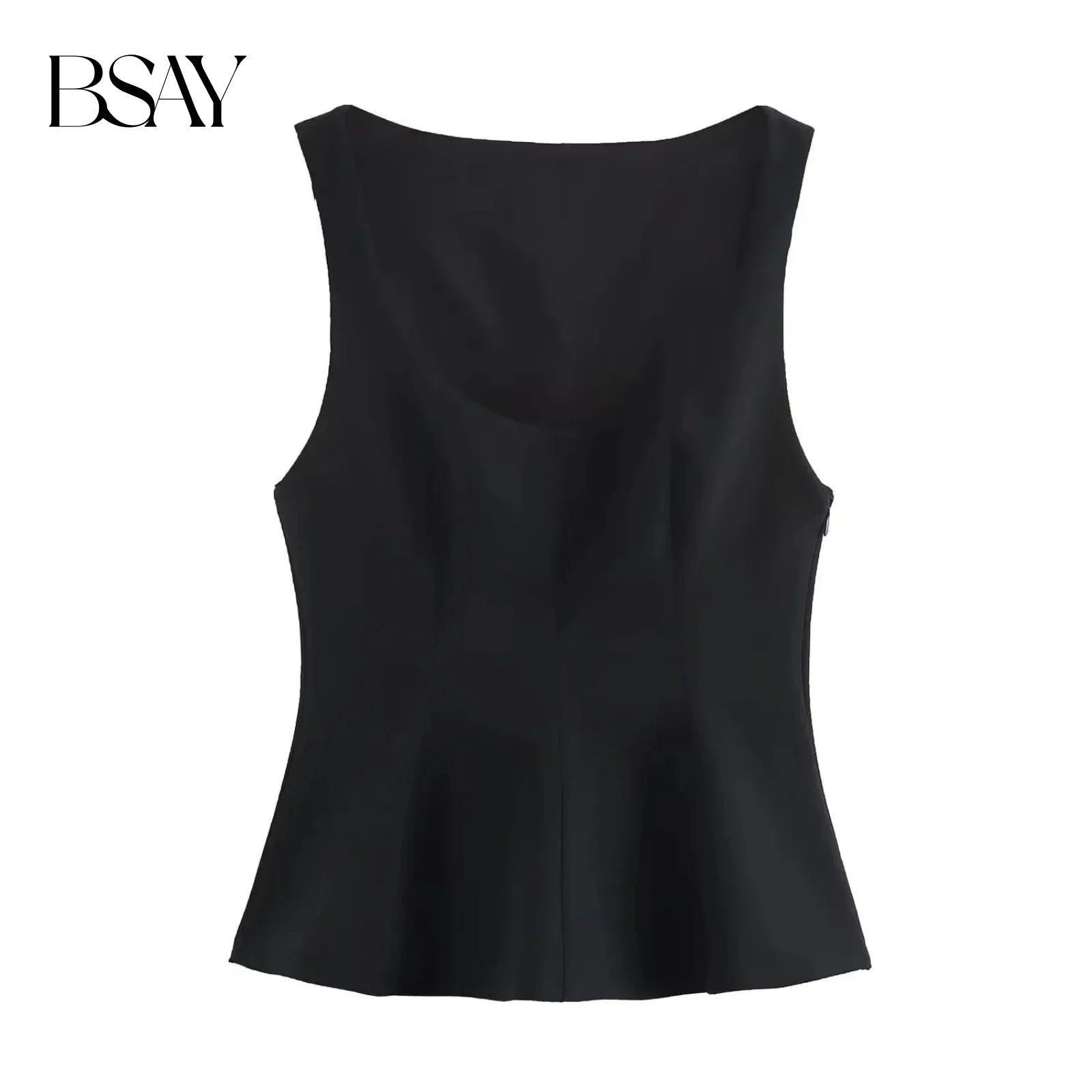 BSAY Top for Women Fashion Autumn Winter New Side Zip Skirt Style Blouse Street Clothing Vest Tank Chic Ladies Crop Tops Mujer