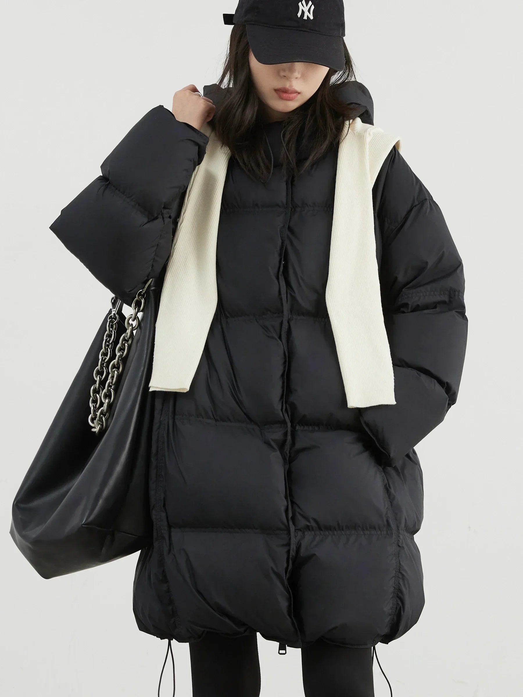 CHIC VEN Women Down Coats Loose New 90 White Duck Down Jacket Medium Long Hooded Female Down Jacket Autumn Winter 2024