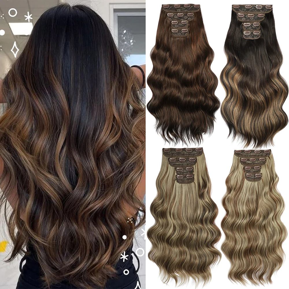Clip In Hair Extensions 4PCS Full Head 22 Inch Long Curly Wavy Synthetic Hair Pieces Natural Wavy For Women Girls Hair