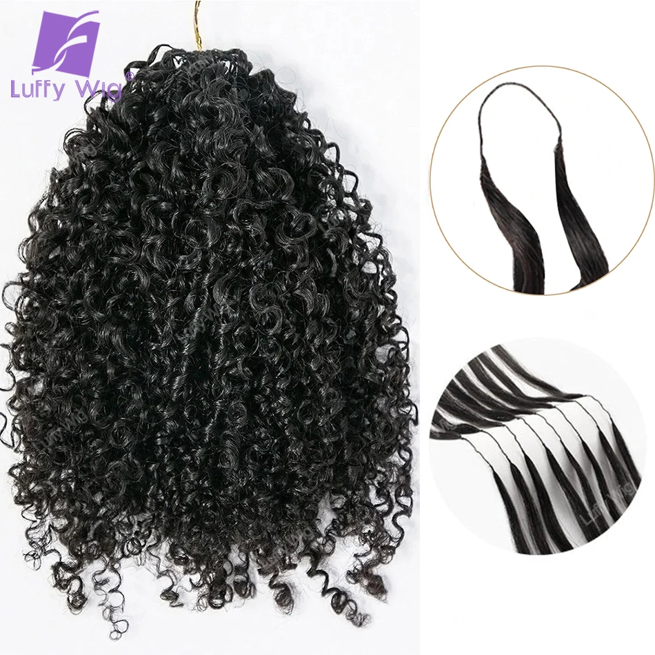 Crochet Human Hair Afro Kinky Curly Extensions Pre Separated Knotless Feather Lightweight Hair Crochet Bundles For Boho Braids LuffyWig