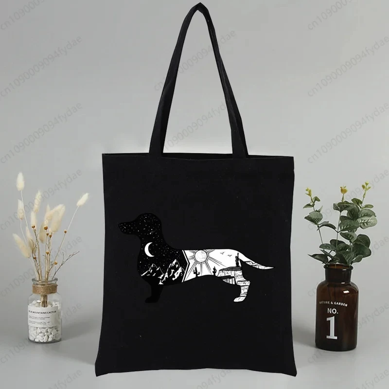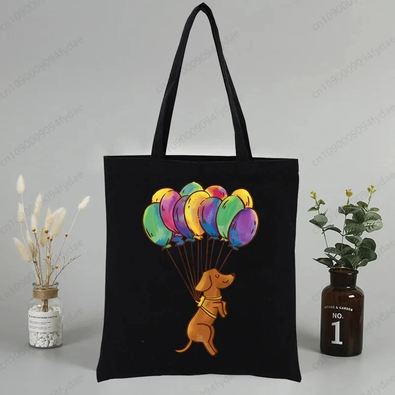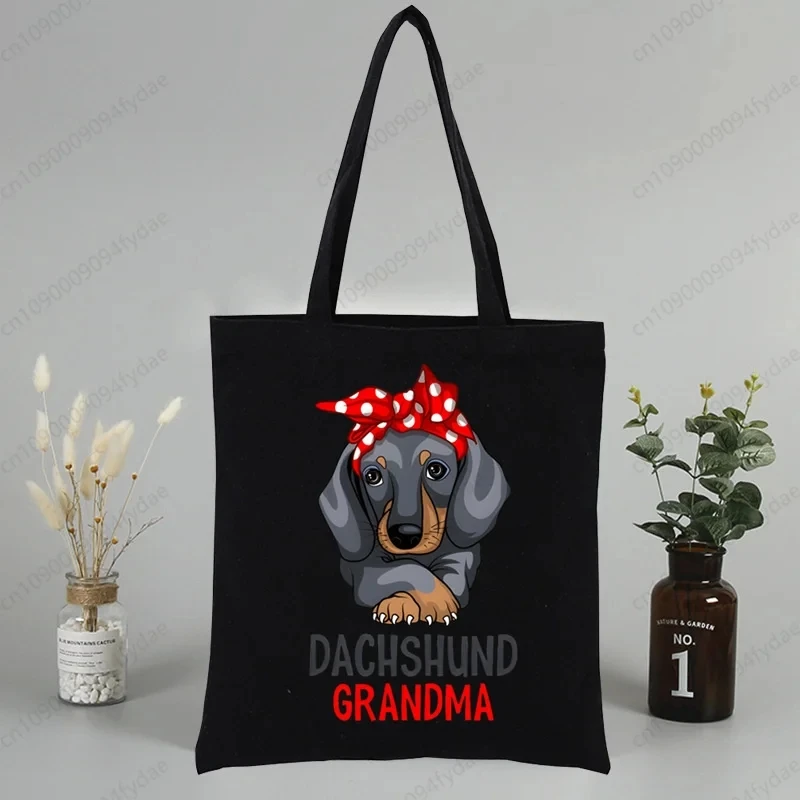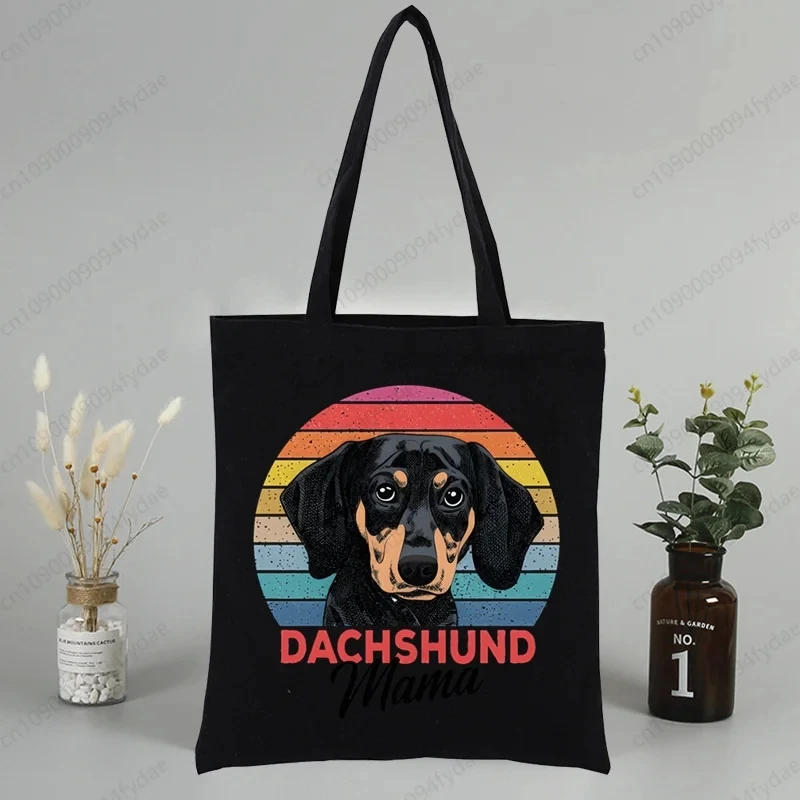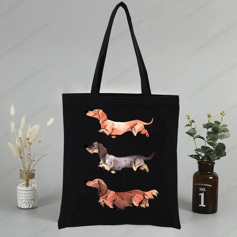 Dachshund Teckel Cute Dog Canvas Tote Bag Printed Cartoon Reusable Cloth Bag Handbag Shopping Shoulder Bags Handbags Women
