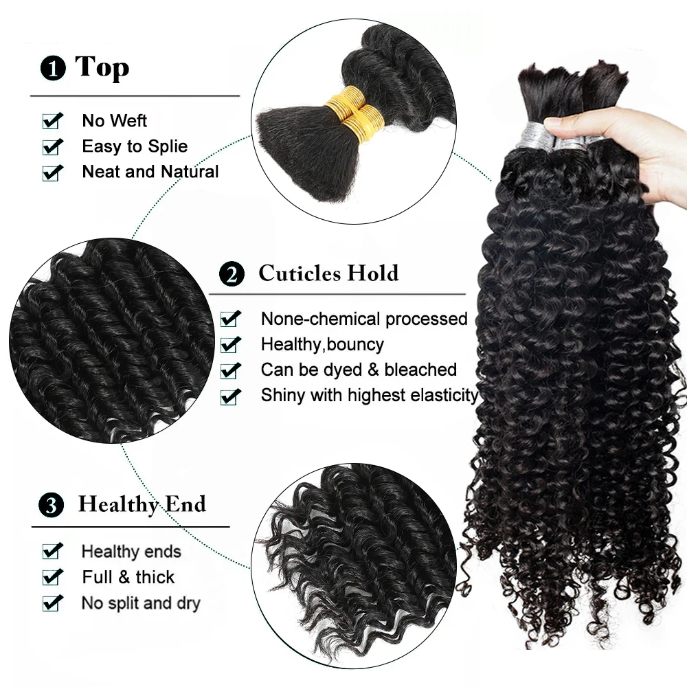 Deep Curly Wave Boho Braids Human Hair Bulk 100g 100% Virgin Raw Human Hair Braiding Hair Extensions No Weft Curly Braiding Hair