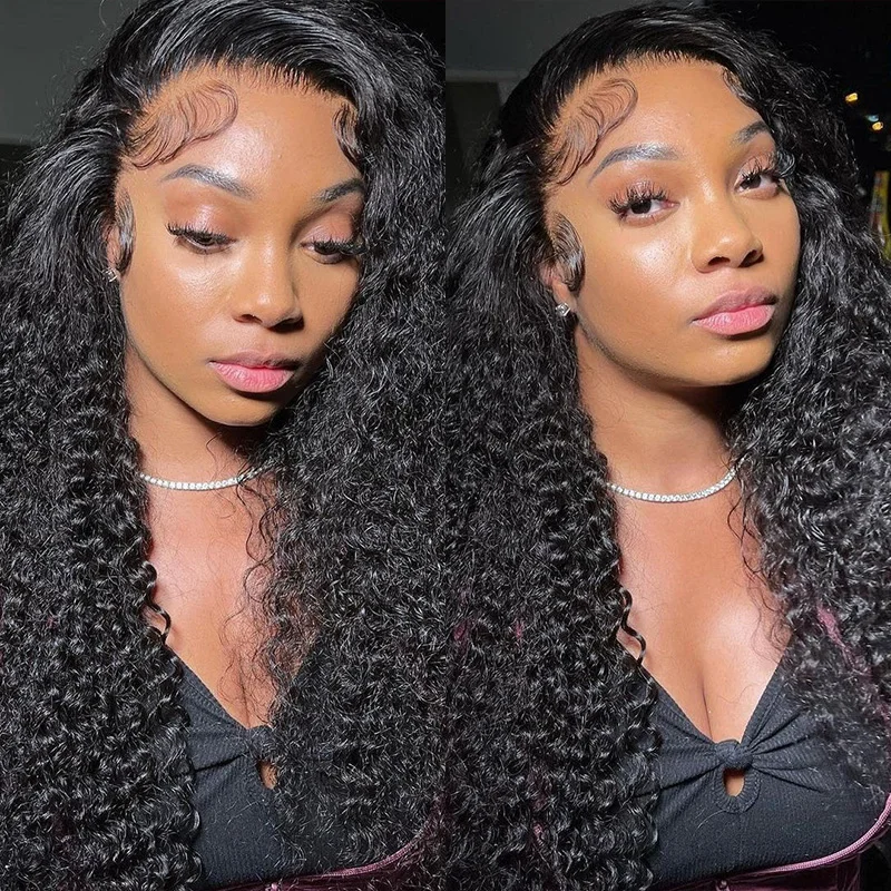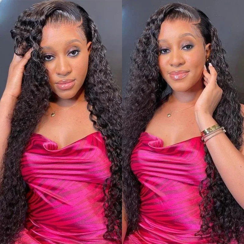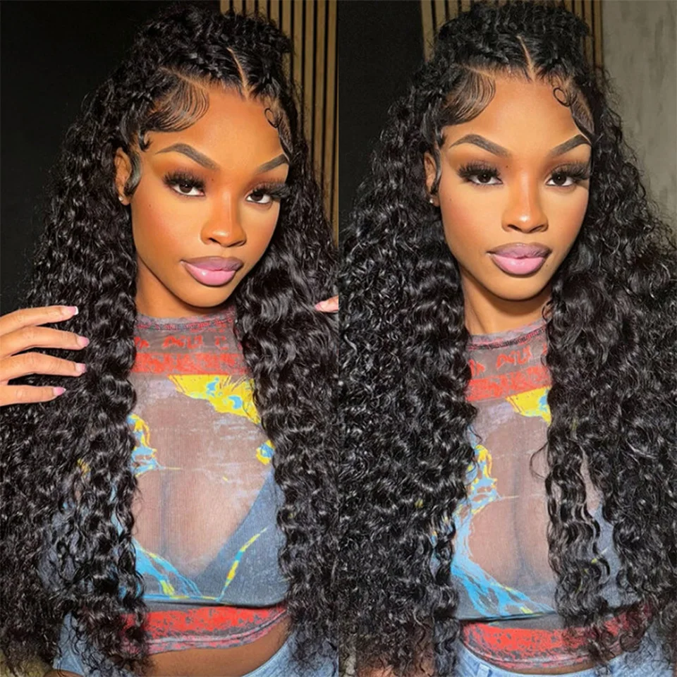 Deep Wave Frontal Wigs Human Hair For Women 200% Density Curly Human Hair Wigs 360 HD Full Lace Front Water Wave Wigs 30 34 Inch