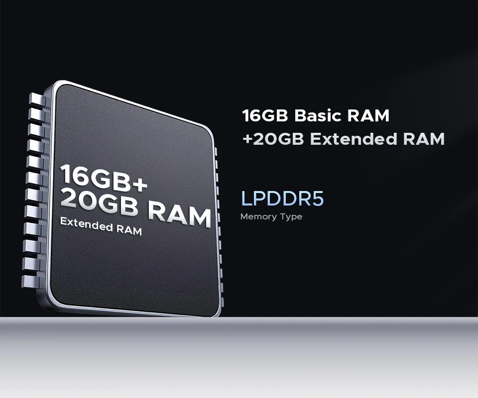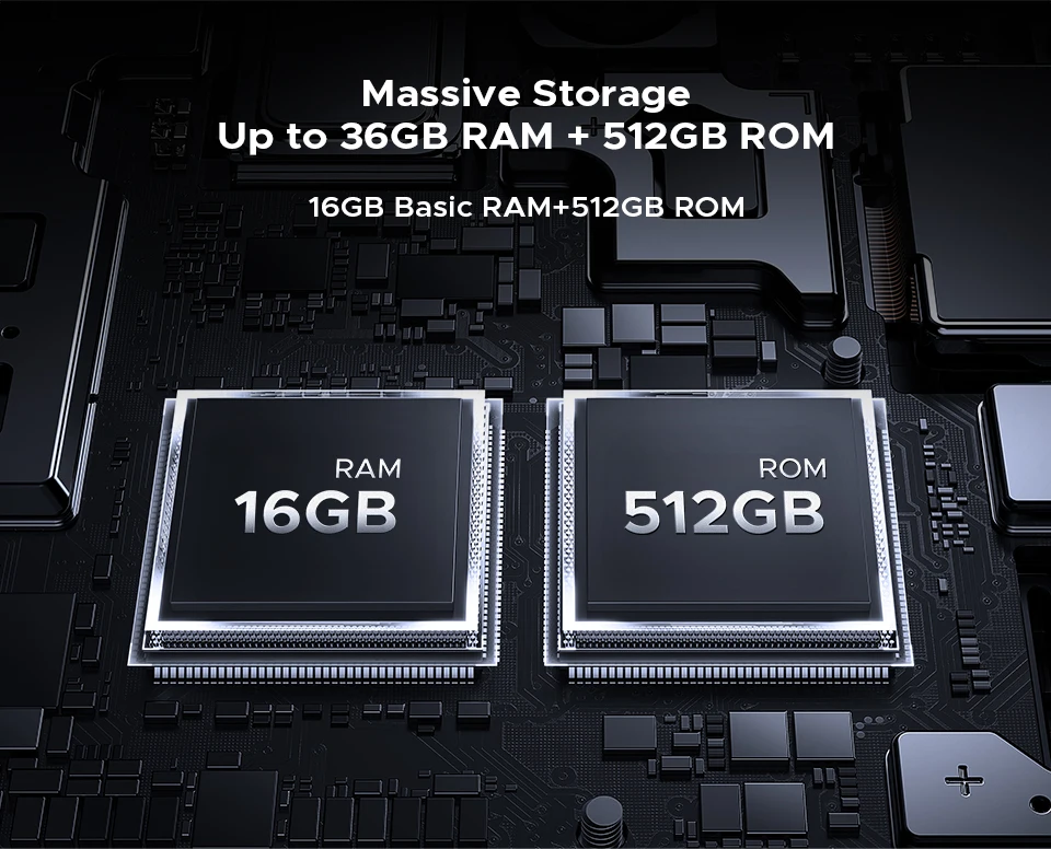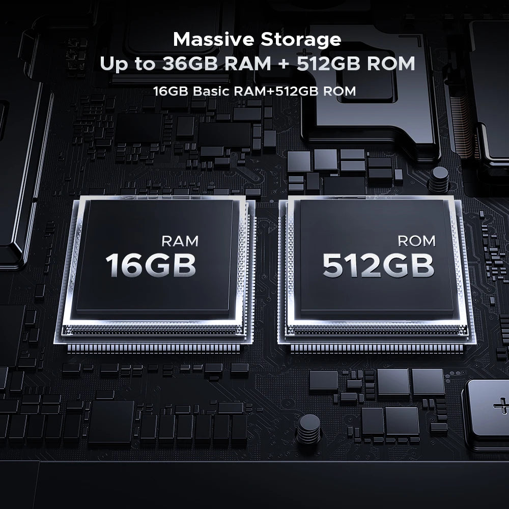 36GB RAM(16GB+Up to 20GB Extended RAM)+512GB ROM DDR5 |