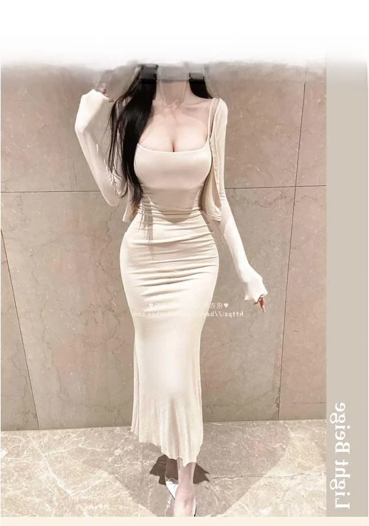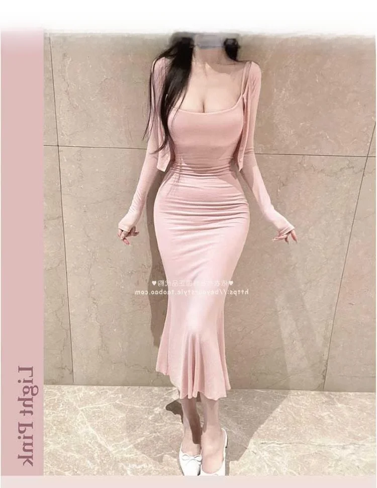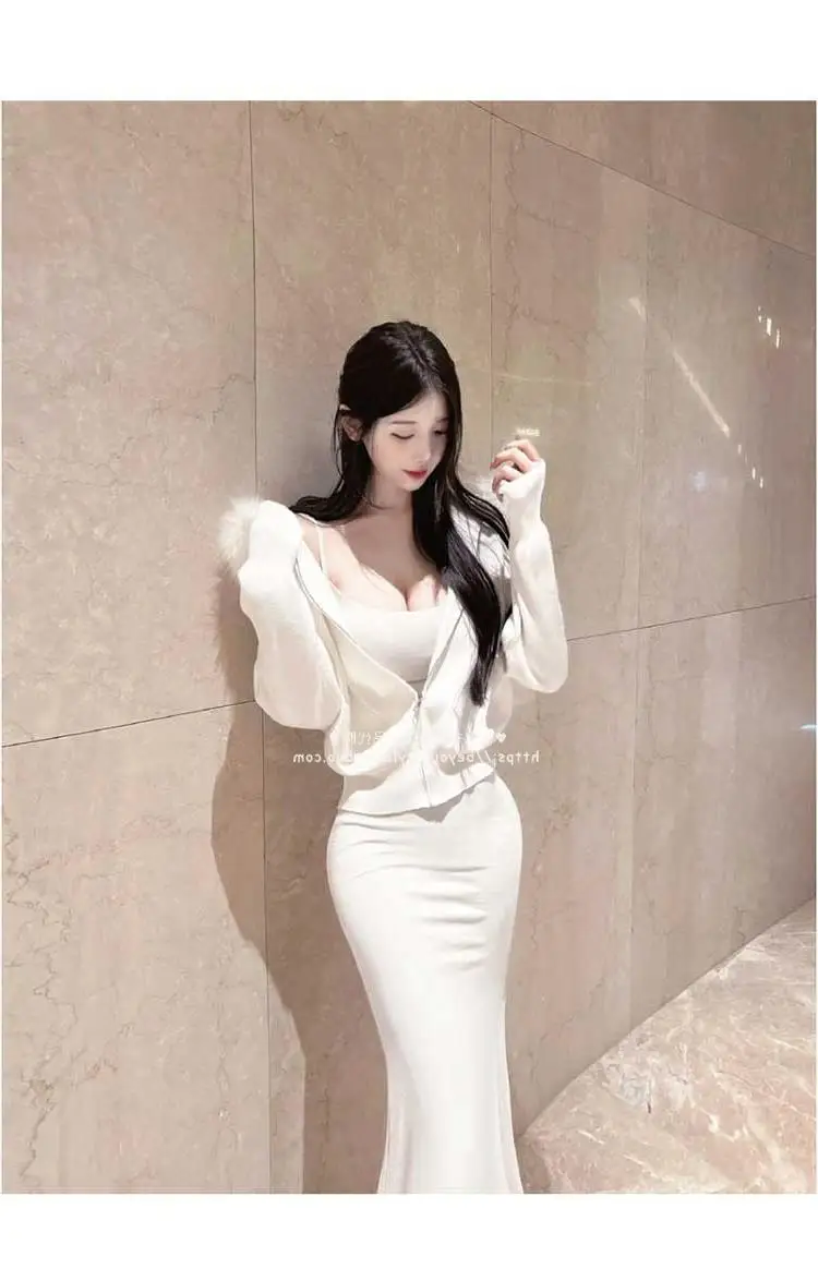 Ele Sexy Bodycon Fi Tail Gown with Open Cardigan Set MV736 by 5STUDIO Long Sve Long Pants Faionable Women's Suit