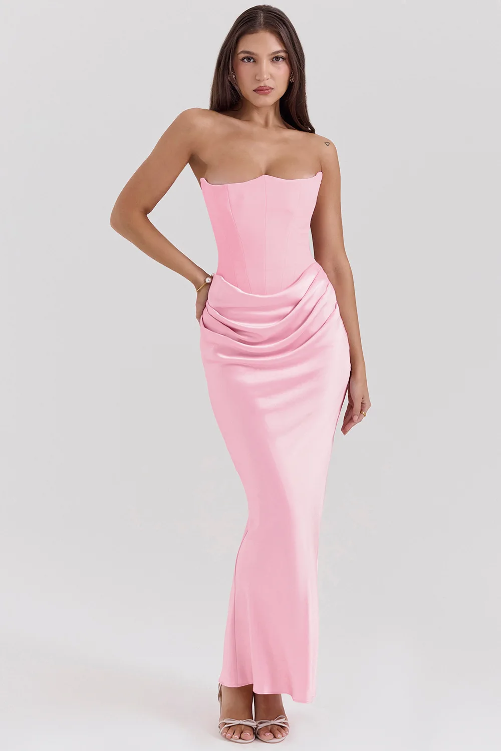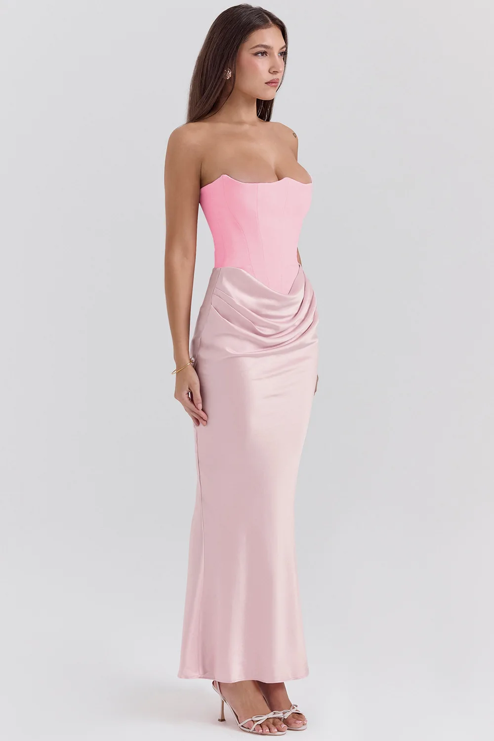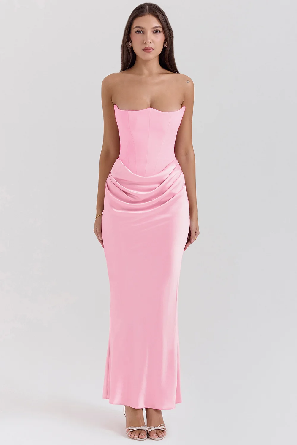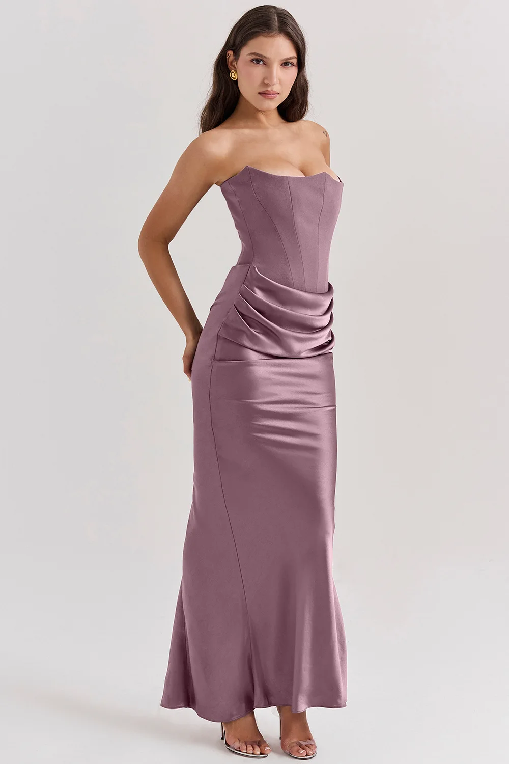 Elegant Mermaid Maxi Dress for Women Formal Occasion Prom Gown Strapless Corset Ruched Long Dress Party Evening Dress Lady Robe