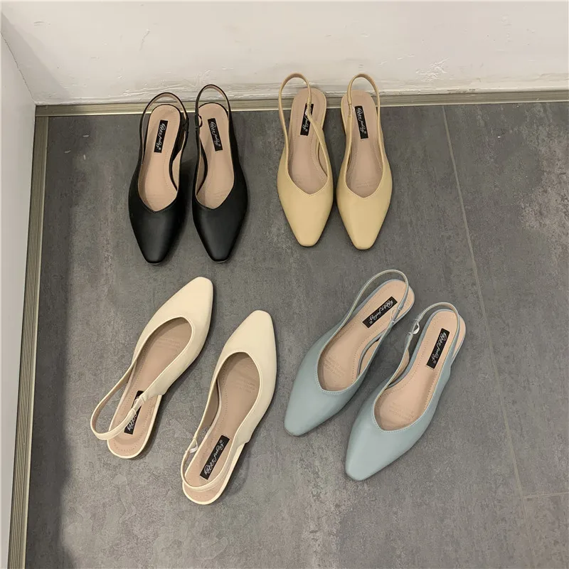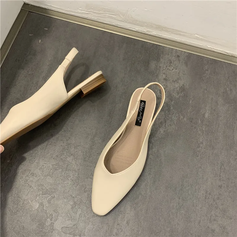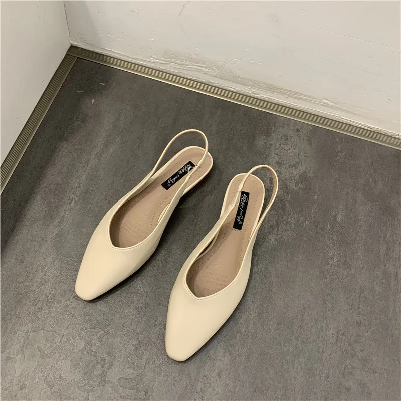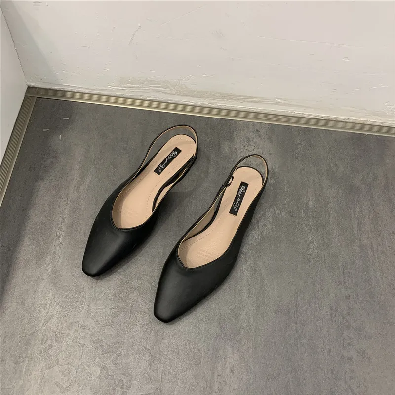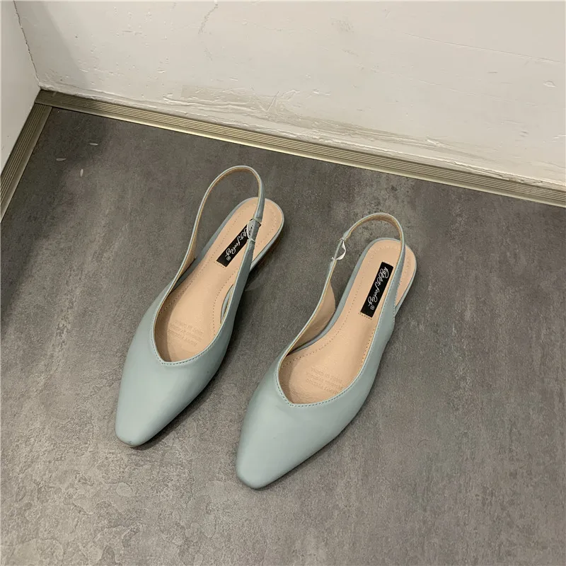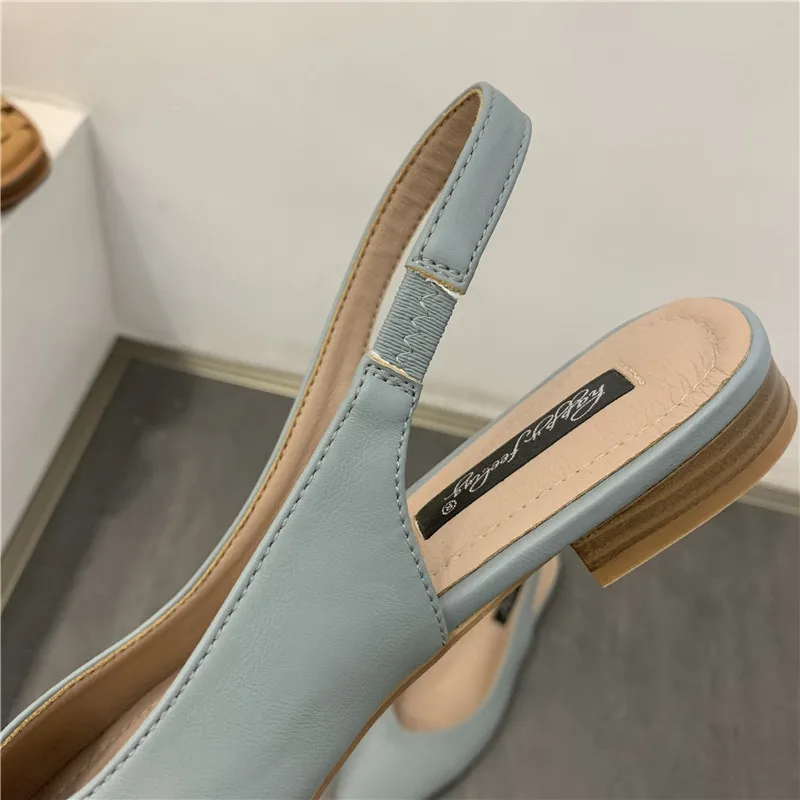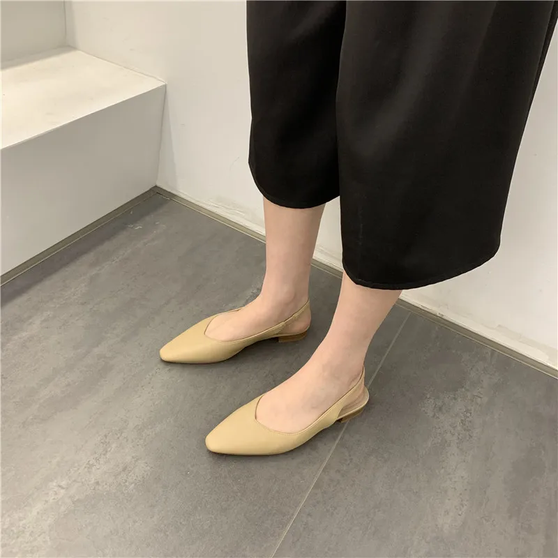 Elegant Slingback Flat Sandals Women Solid Leather Pointed Toe Shoes Summer Ladies Rear Strap Sandalias Low Heel Mary Janes 2025