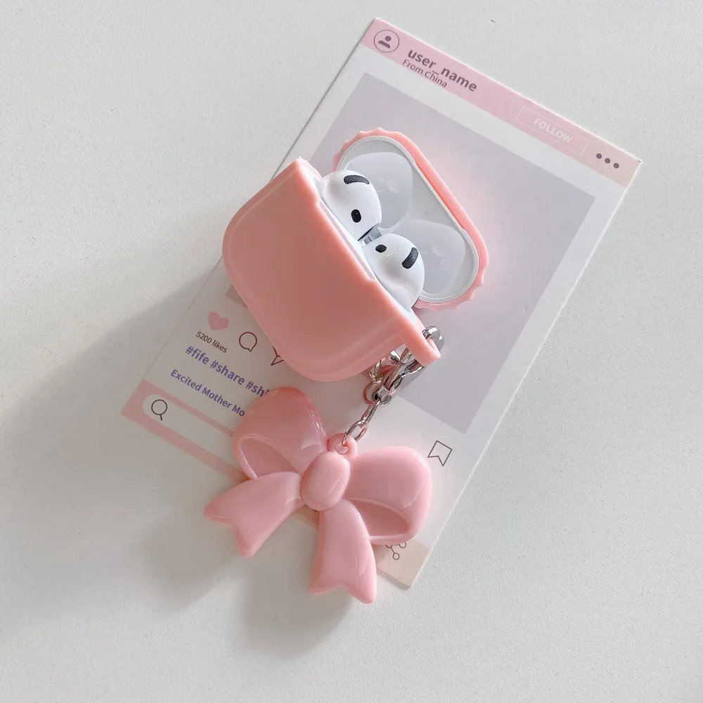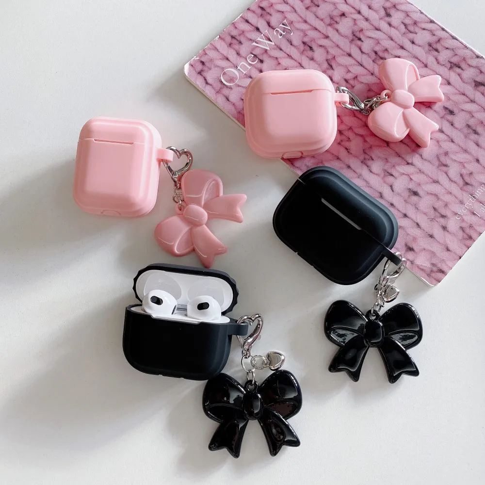 Fashion Chocolate Case For Airpods Pro 3 2025 Case Soft Silicone Earphone Cover For Airpods 4 3 2 1 Pro 2 With Bowknot Keychain