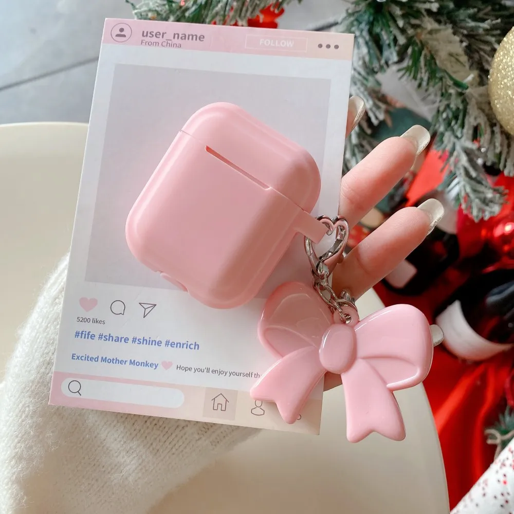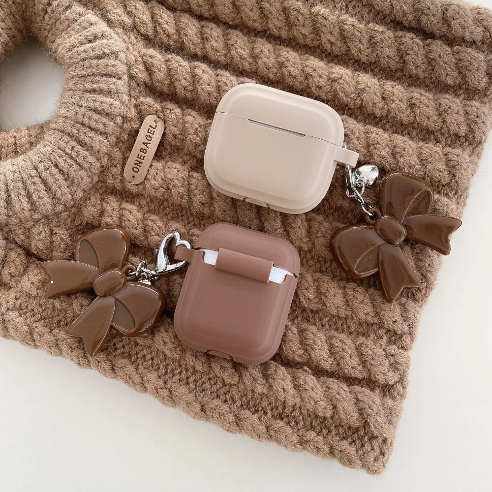 Fashion Chocolate Khaki Case For Airpods Pro 3 2025 Case Soft Silicone Earphone Cover For Airpods 4 3 2 1 Pro 2 Case With Bowknot Keychain