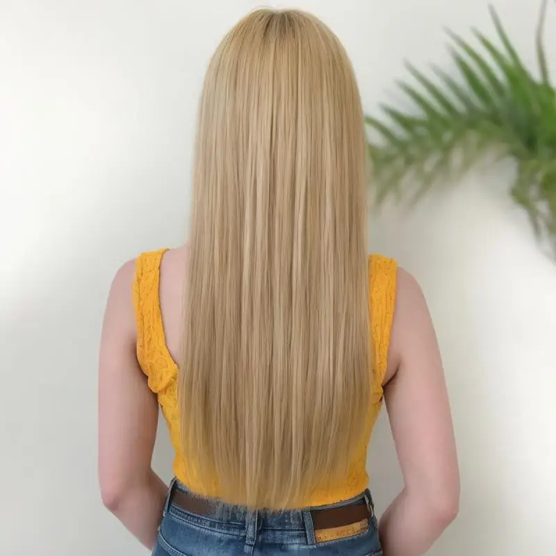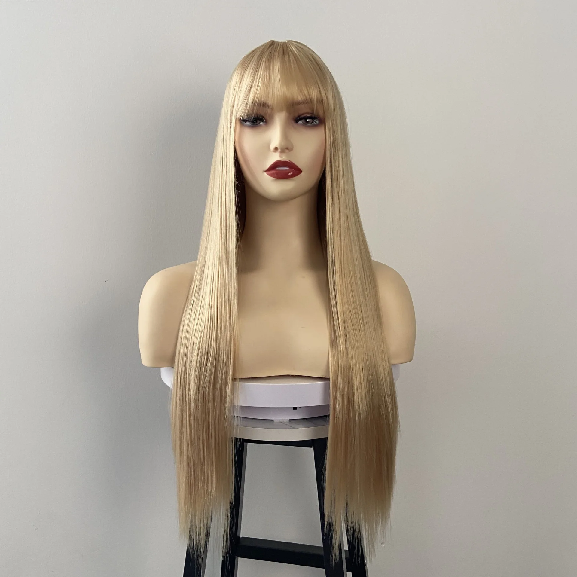 Fashion synthetic wig for women Air bangs long straight hair beige white high temperature silk synthetic fiber full head cover