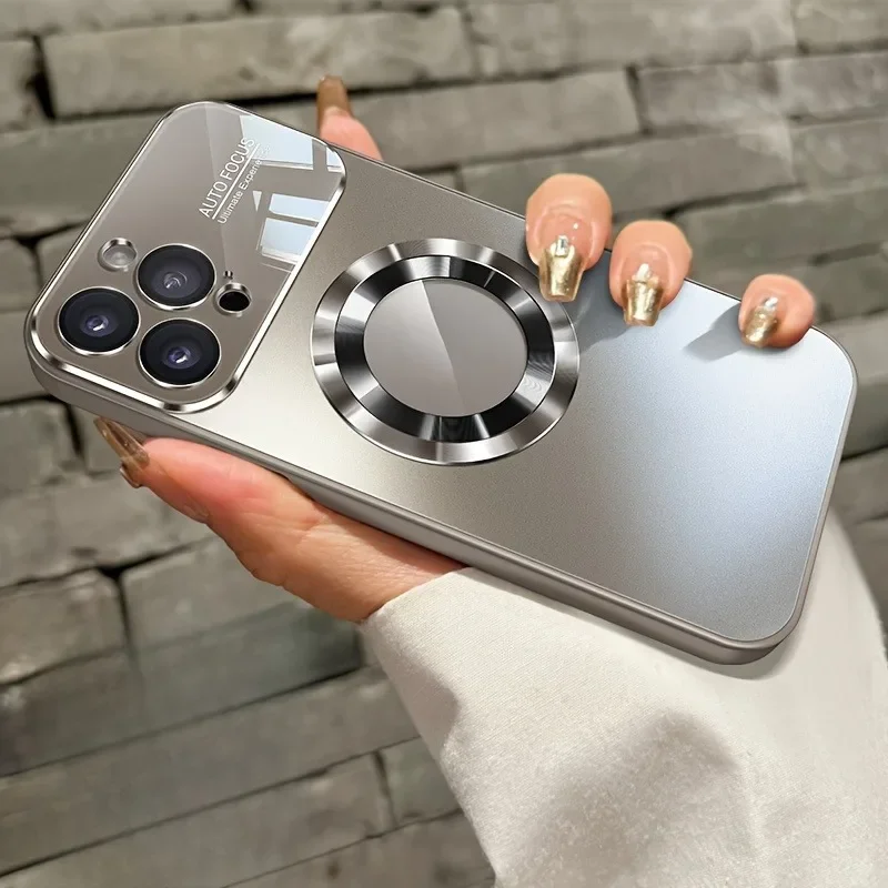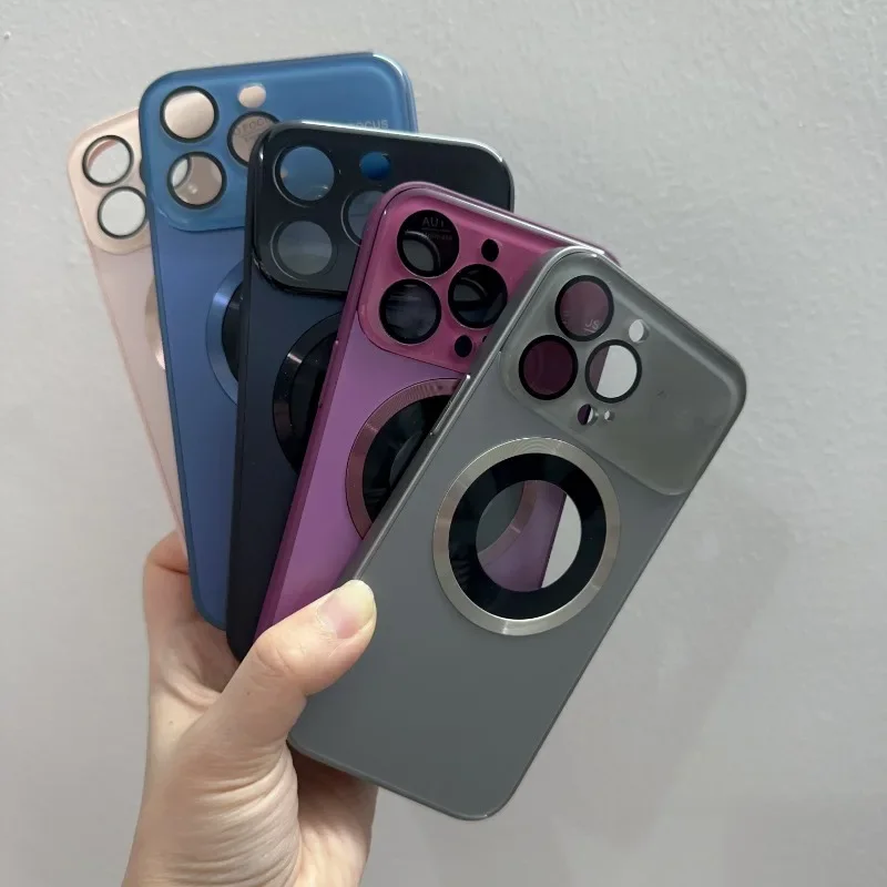 Fashion Titanium Alloy Case For iPhone 16 15 14 Plus 13 11 Pro Max 16 Plus High-end Glass Magnetic Phone Case Simple Phone Case