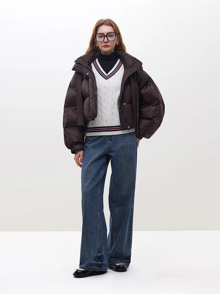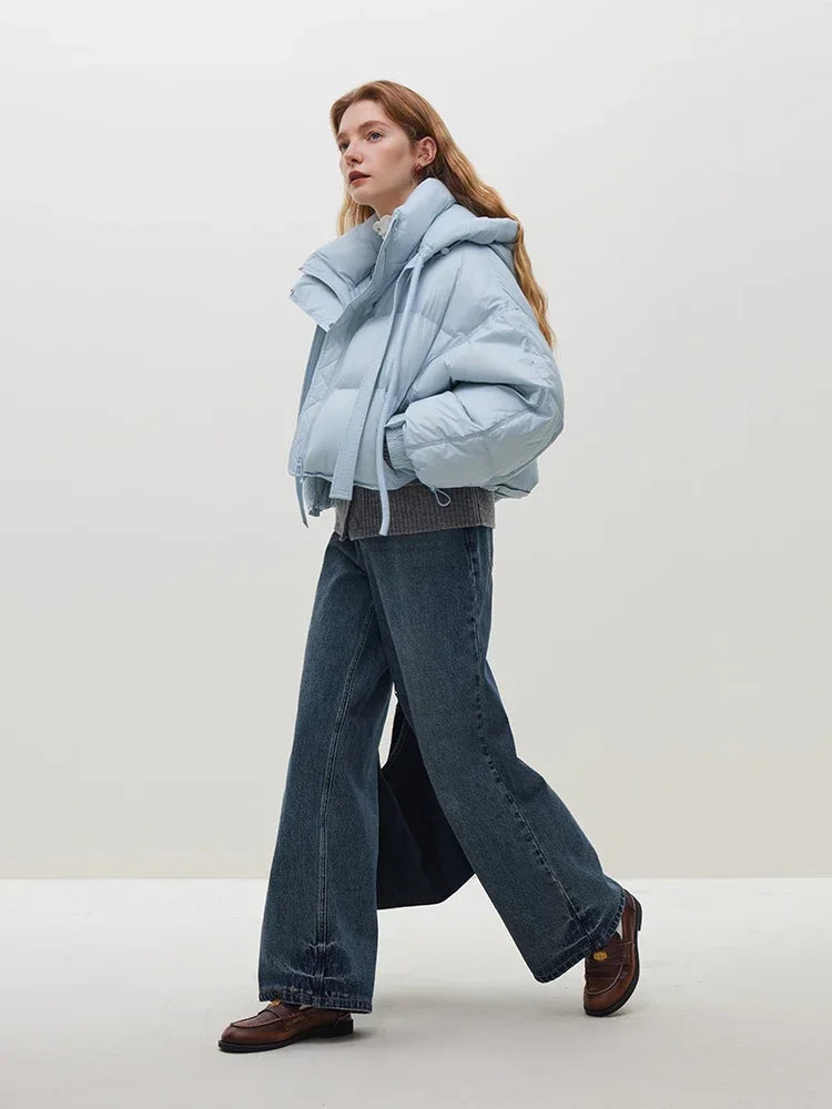 FSLE Classic Style Commuter 100-150G Short White Goose Down Jacket for Women 2023 New Winter Bat Sleeve Loose Warm Jacket Female