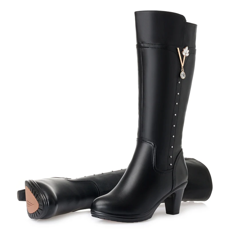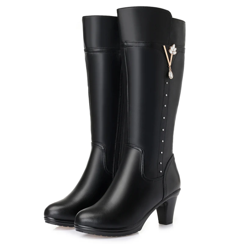 GKTINOO Winter Knee High Boots Warm Wool Fur Shoes Woman High Heels Soft Leather Non-slip Women's Winter Boots Footwear Botas