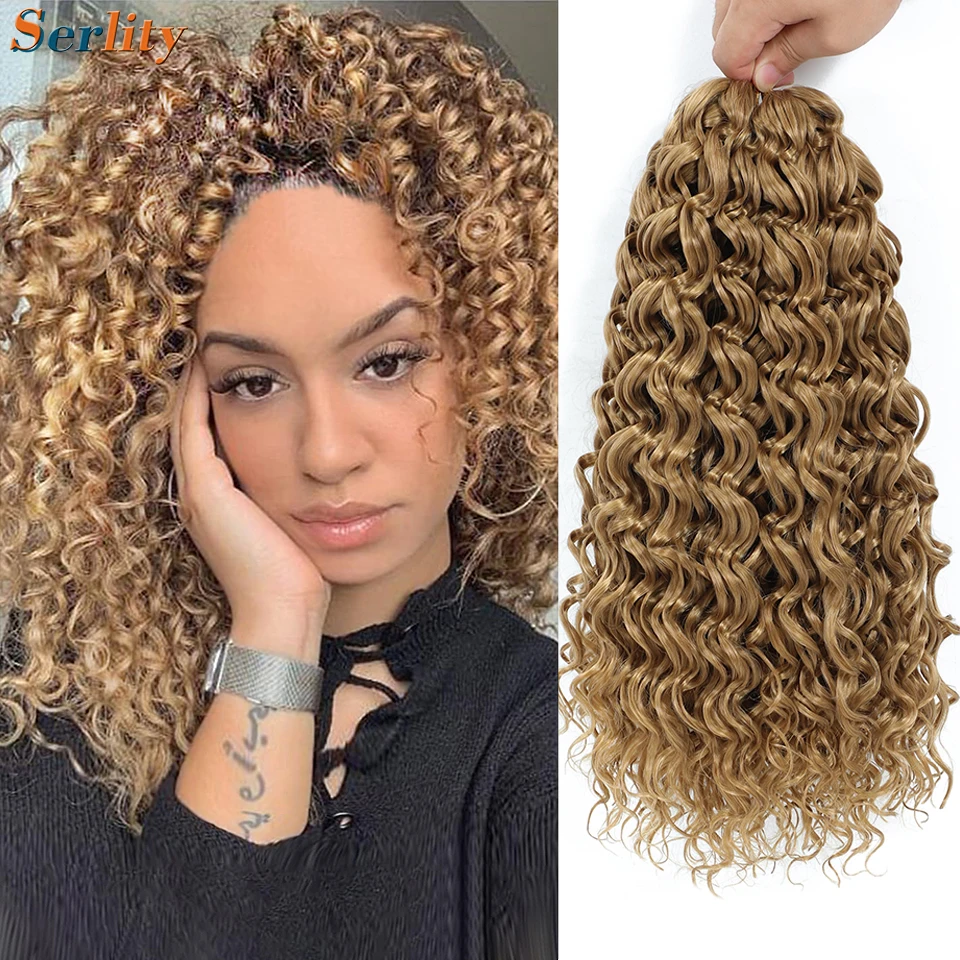 GoGo Curl Crochet Hair 14inch Curly Ocean Wave Synthetic Braiding Hair Jet Black Beach Curl Water Wave Deep Twist Crochet Braids