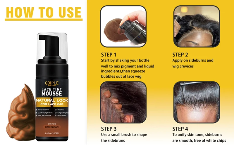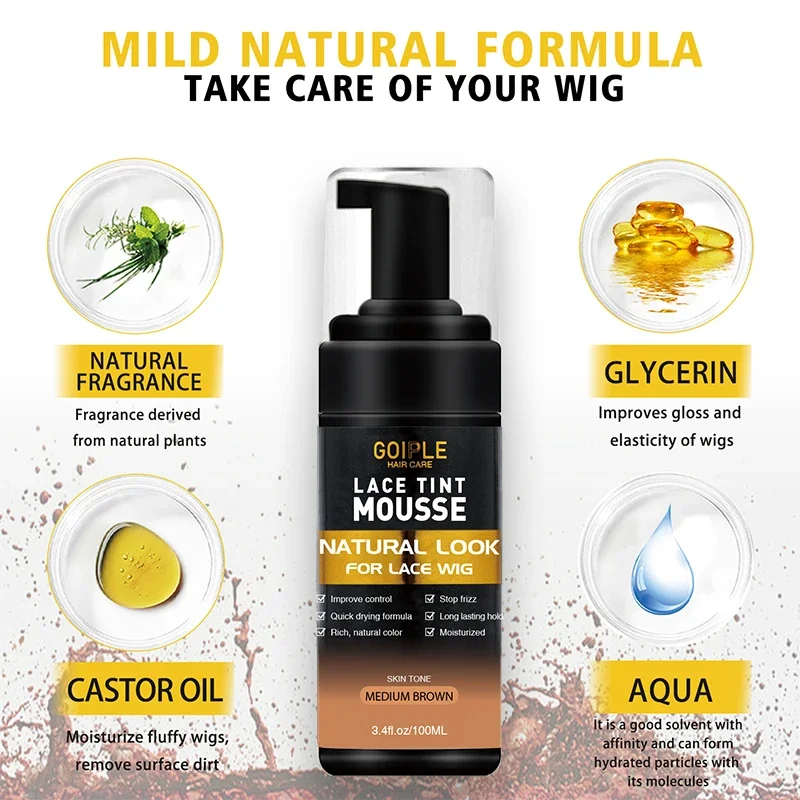 Matching Skin Tone: GOIPLE Lace Tint Mousse allows the trim edges of the lace wig to blend better with your scalp.