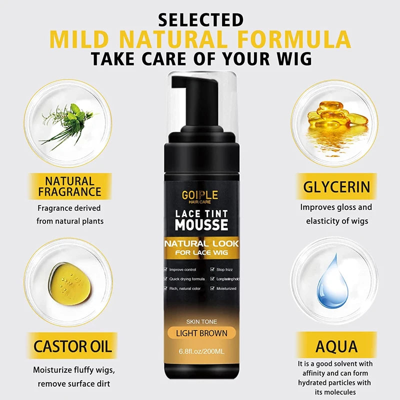 GOIPLE 200ML Lace Tint Mousse for Wig Grids Concealer Waterproof Melt Lace Dye Front Tint Spray Foam Quick Dry Wig Knots Healer