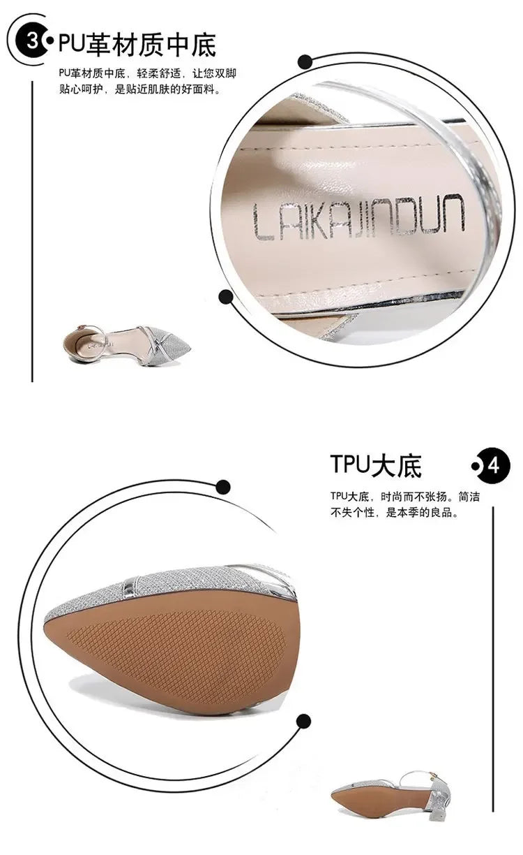 Gold Women Sandals Party High Heels Slip-On Solid Sexy for Ladies Quality Wedding Party Nightclub Sequin Buckle Shoes for Women