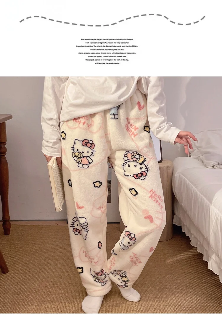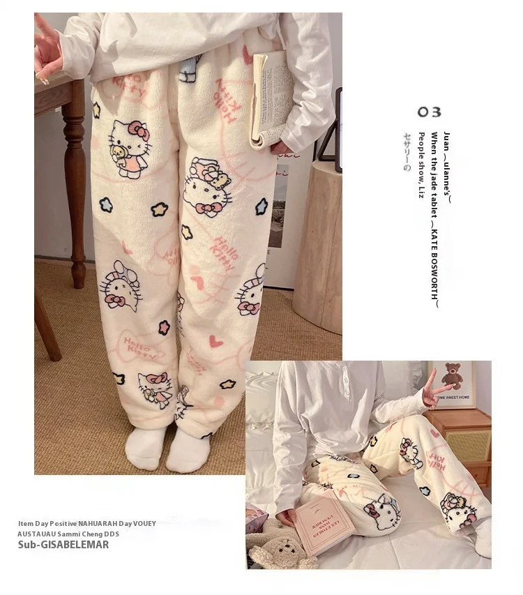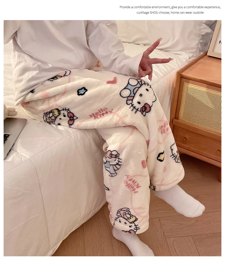 HelloKitty Warm Coral Velvet Sleepers Women's Flannel and Velvet Thick Pants Sleepwear Plush Large Home Pants