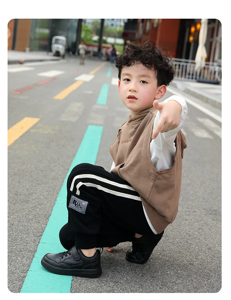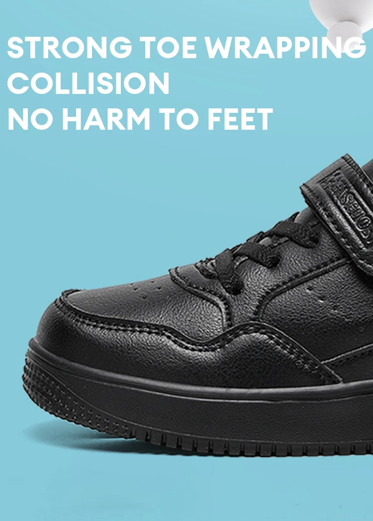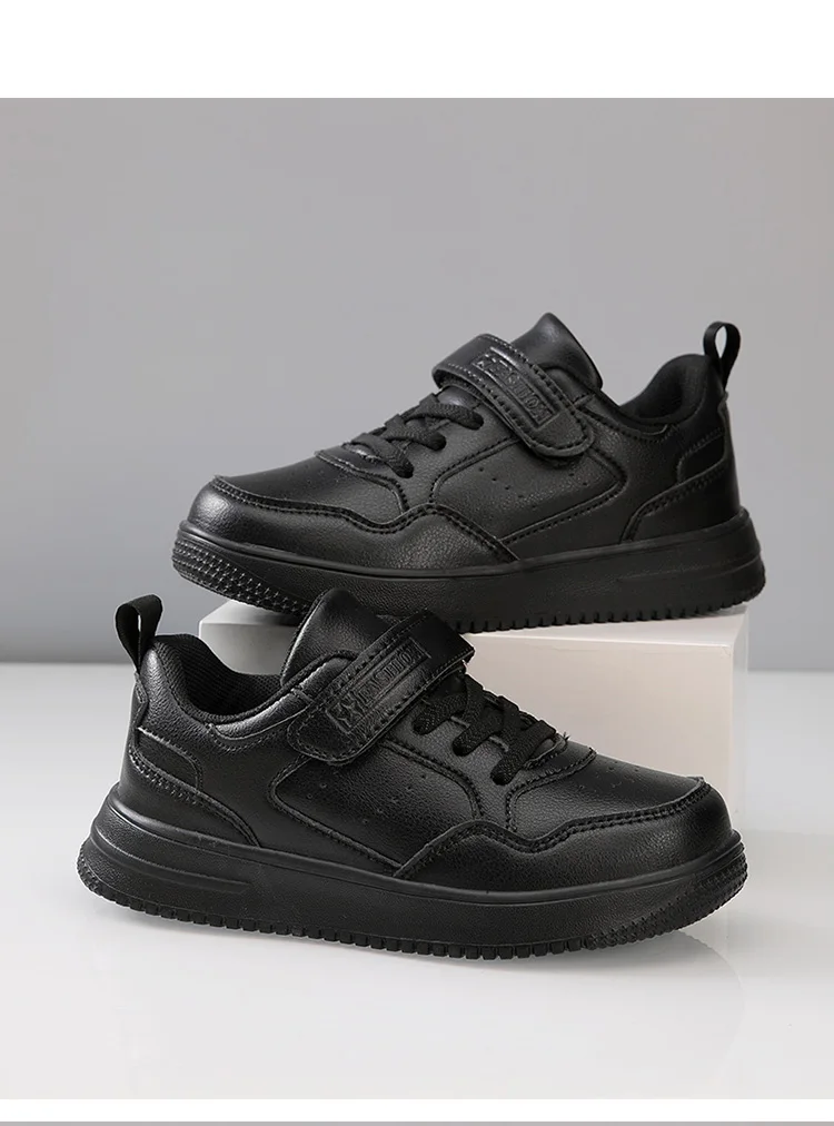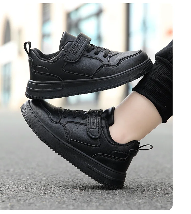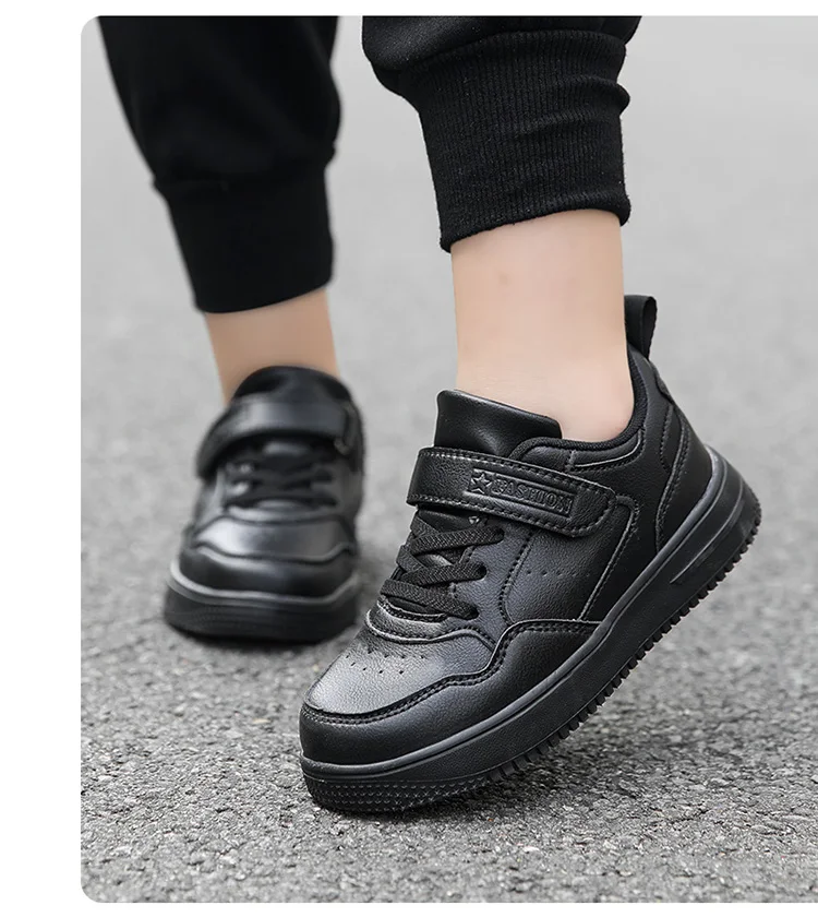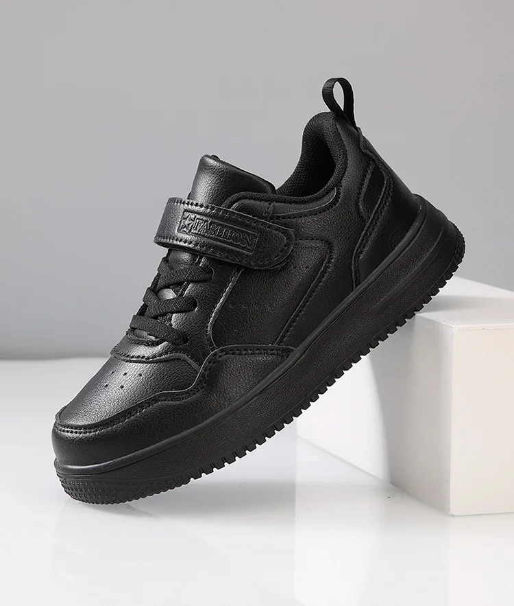 Kids' Classic Black Skate Shoes Boy Lightweight Breathable Casual Sneakers with Cushioned Insole Non-Slip Design for School