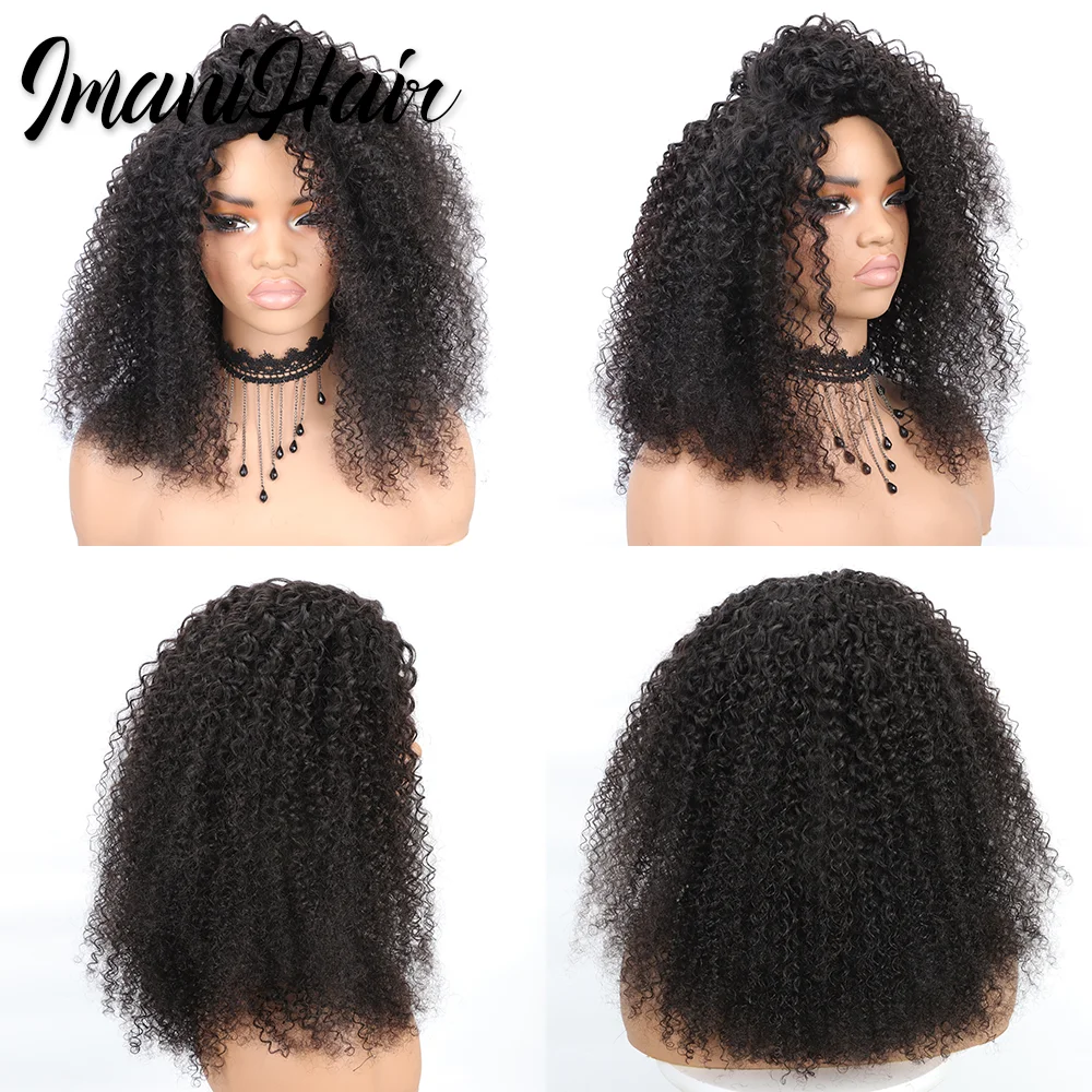 Kinky Curly Half Wig Human Hair Wear And Go Glueless Wigs Curly 3 In1 Wigs for Women Drawstring Seamless Flip Over Glueless Wigs